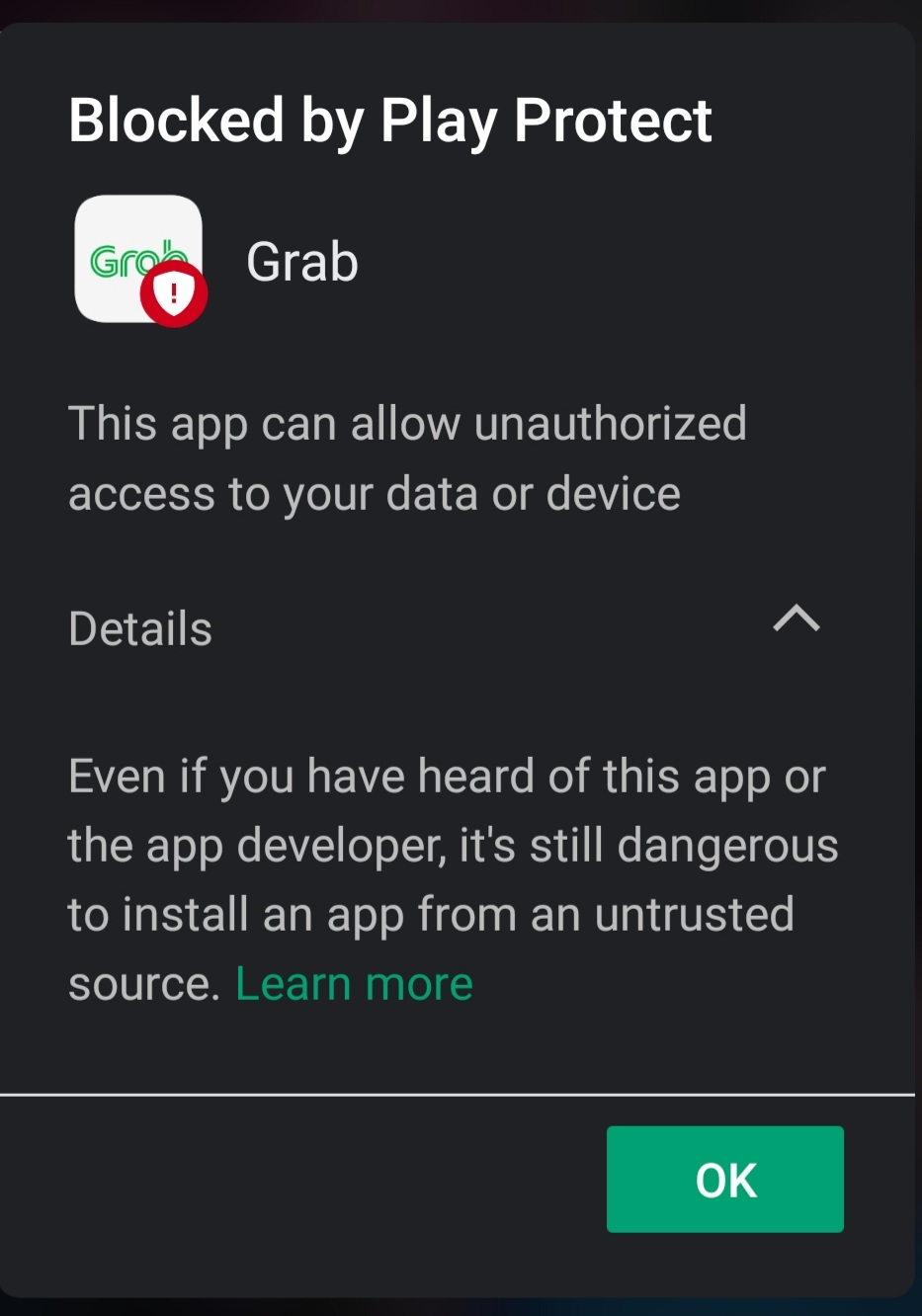 Just got this pop up. I actually have never gotten this pop up ever, and the app is a major transportation app in SE Asia.