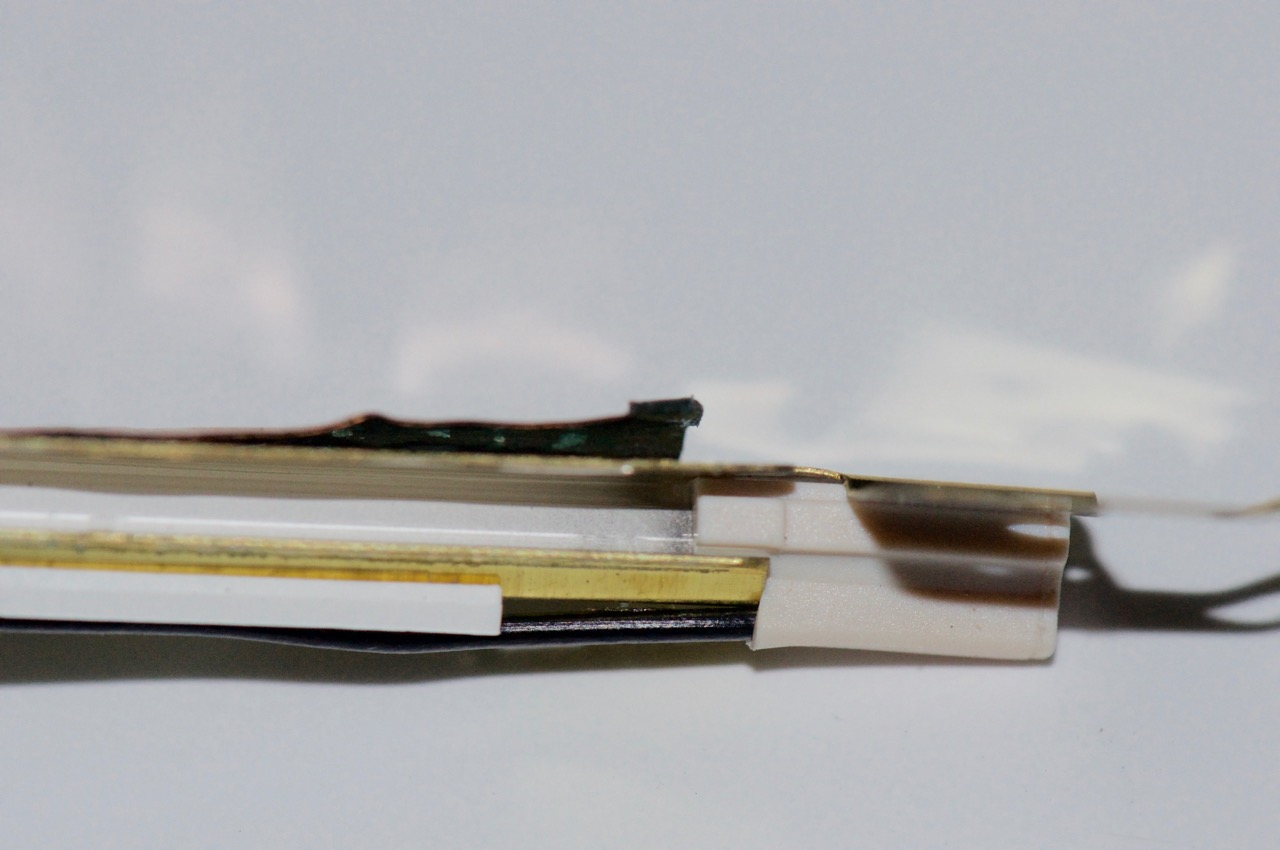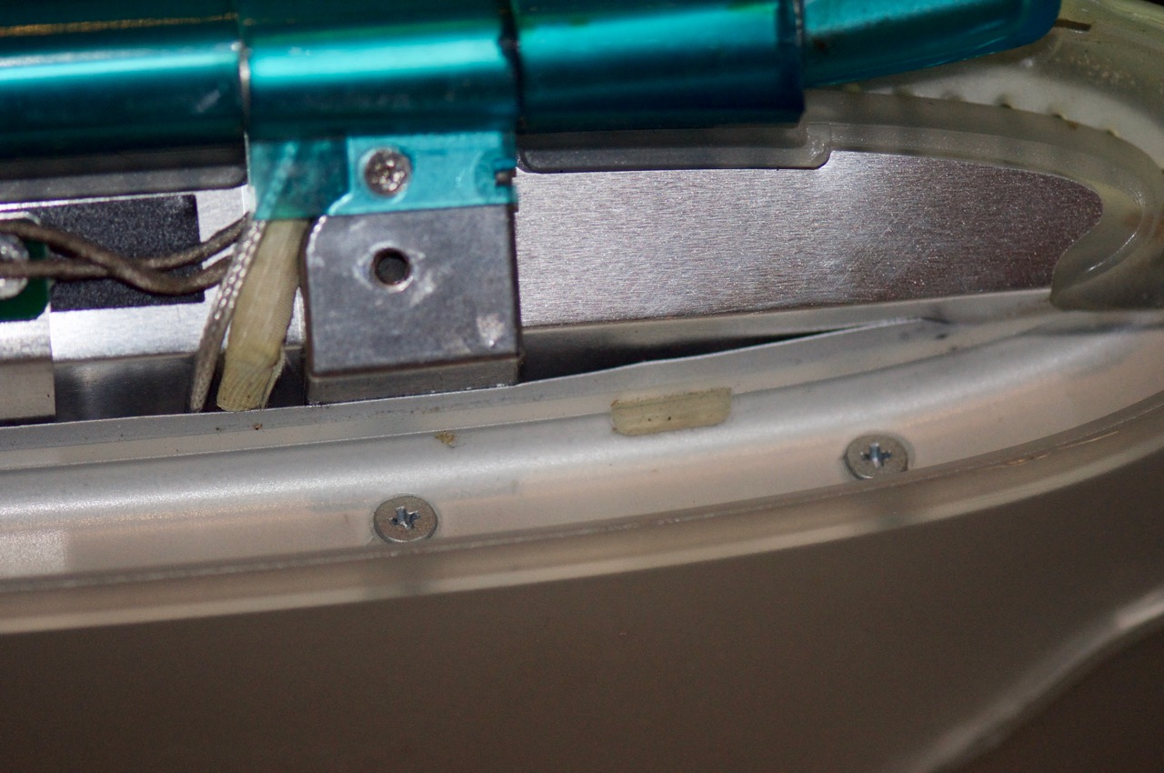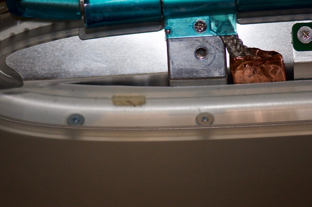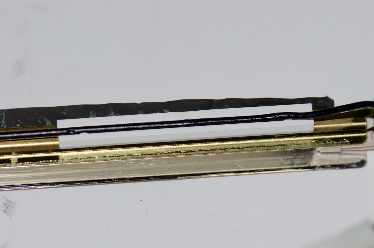 14. Here I've installed the thinner 2mm PBG4 12" CCFL tube into the original Clamshell reflective channel and positioned the black wire to run back along the channel in the white clips.