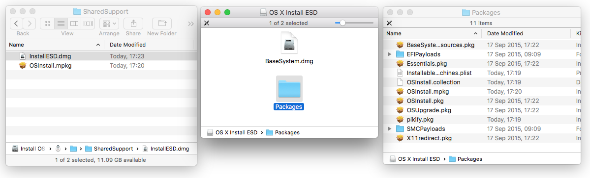 go into the Packages folder and confirm that the pikify.pkg file and the OSInstall.collection file are present.