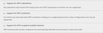 Ok, so I can't write to my APFS boot volume - the Paragon AFPS driver can't write to AFPS volumes that have snapshots enabled.