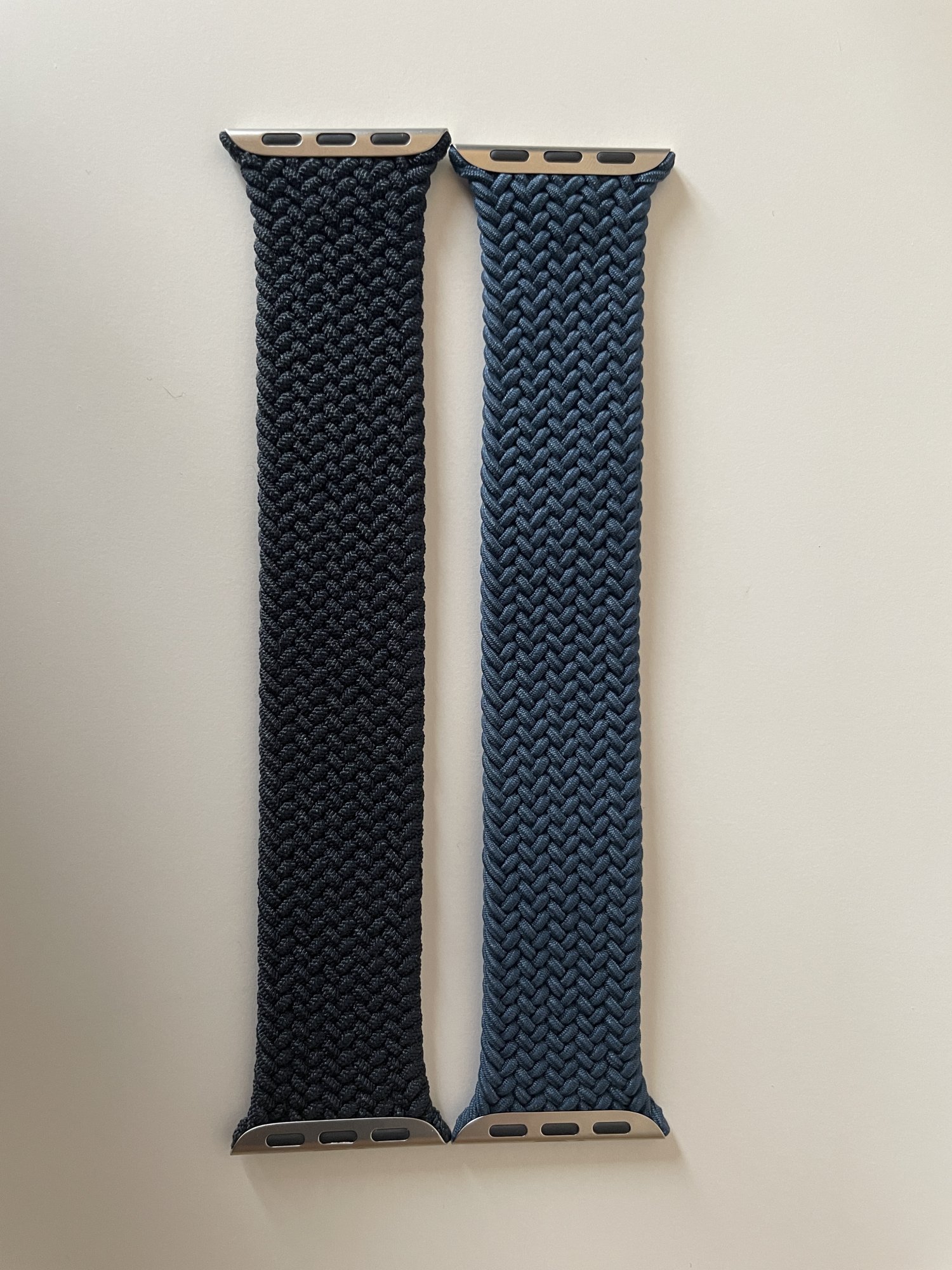 I've just taken the Charcoal out of the box, and to my surprise it's actually a different length. It doesn't look like much in the picture but when wearing it the brand new Charcoal band is significantly looser on my wrist. This is despite wearing the Abyss Blue for a couple of days.