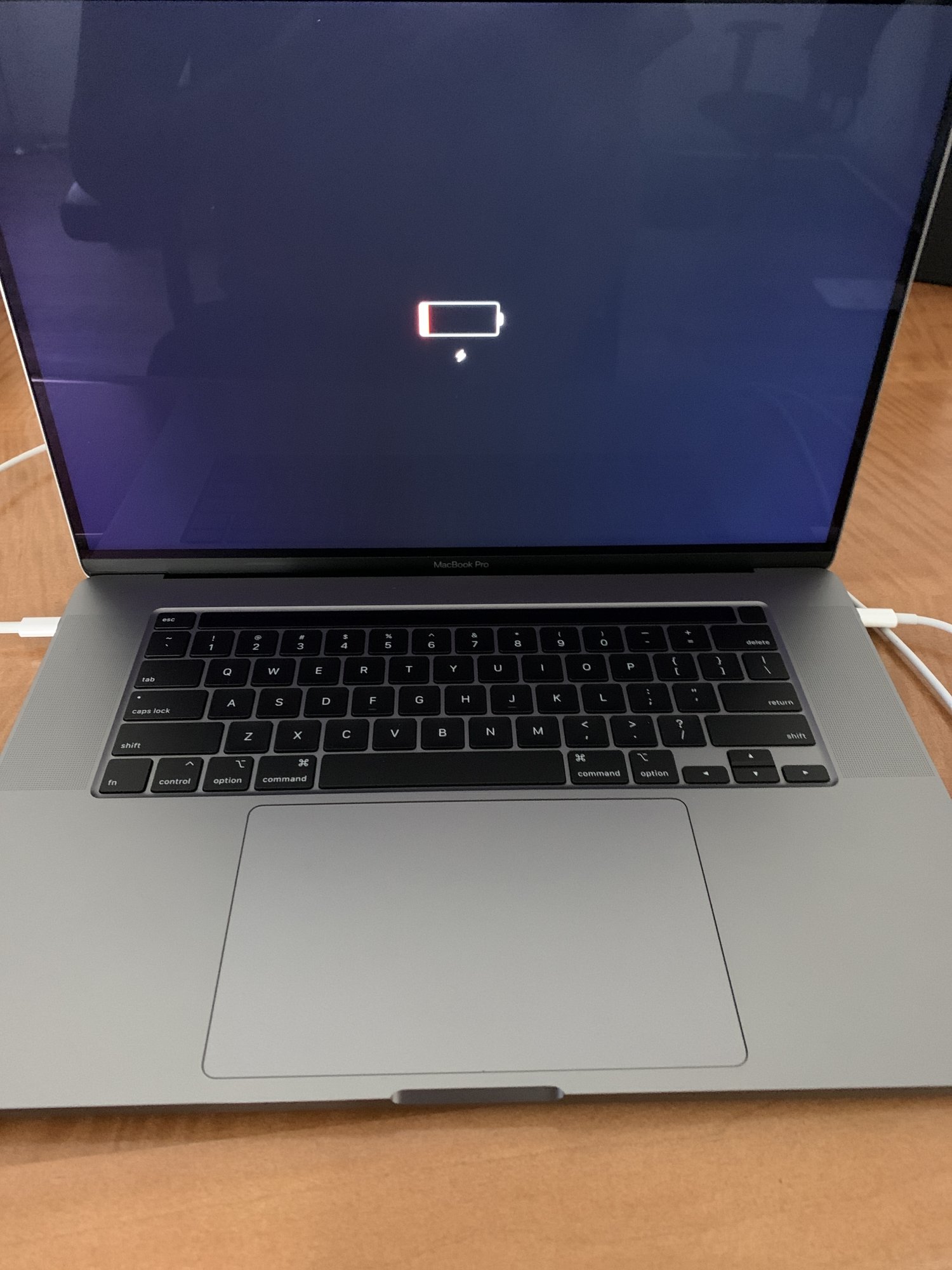 I just received a brand new Macbook Pro 16 inch today and when I open the lid the first time it does not power on despite pressing the power button as well. I plugged it to the wall charger and the screen displays battery icon in red with a charge icon just below it. Kept the laptop charged for few hours but it still will not boot and battery still seems empty.