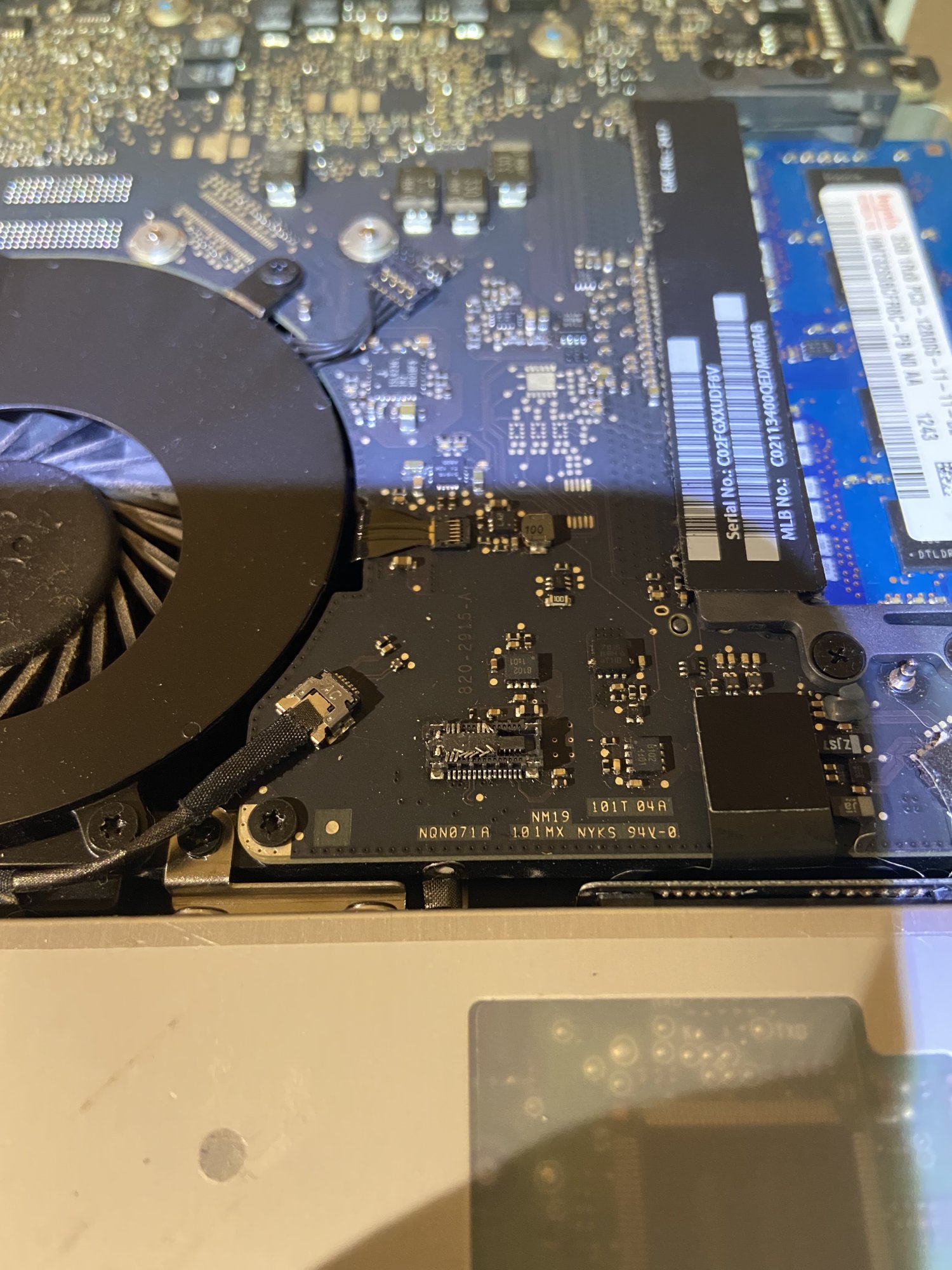 I have a late 2011 MBP 15 inch. I discovered that the WiFi did not work and I set to find out why. I found the problem was the cable that connects the airport card to the logic board had half the socket rip off from the ribbon cable and still in the logic board. I purchased a replacement cable but cannot get the broke piece out of the logic board. I tried using the pointy end of a plastic spudger to get it out but no luck.