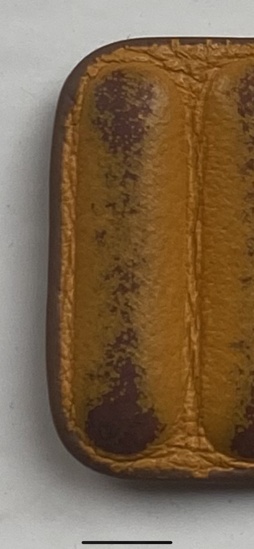 mikeb298 macrumors member Dec 1, 2019 80 90 Indiana Oct 29, 2020 #2 Worn mine for a week straight now. Very faint darkening on the underside (the brown portion) from being in contact with my skin. The yellow portion only has slight darkening around the edges so far. Breaking in nicely I think.