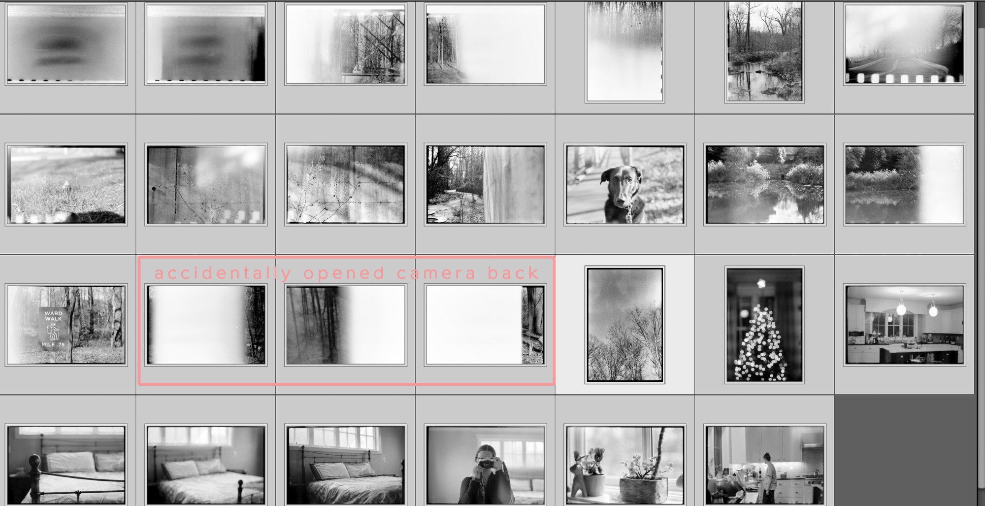 Well I can't explain that, but in the past I must admit I have opened my fair share of camera backs. And I have encountered similar results. I never seen something like that happen from film developing gone wrong. It's been my experience if film touches film in the development process is gets glued together, and the resulting marks are more organic. The sprocket marks I seeing look exposed on to the film.okay, good to know. but why are the first few frames basically ruined, and then some good ones in the middle, before the back opened? i mean, clearly the back opening didn't ruin the entire roll.