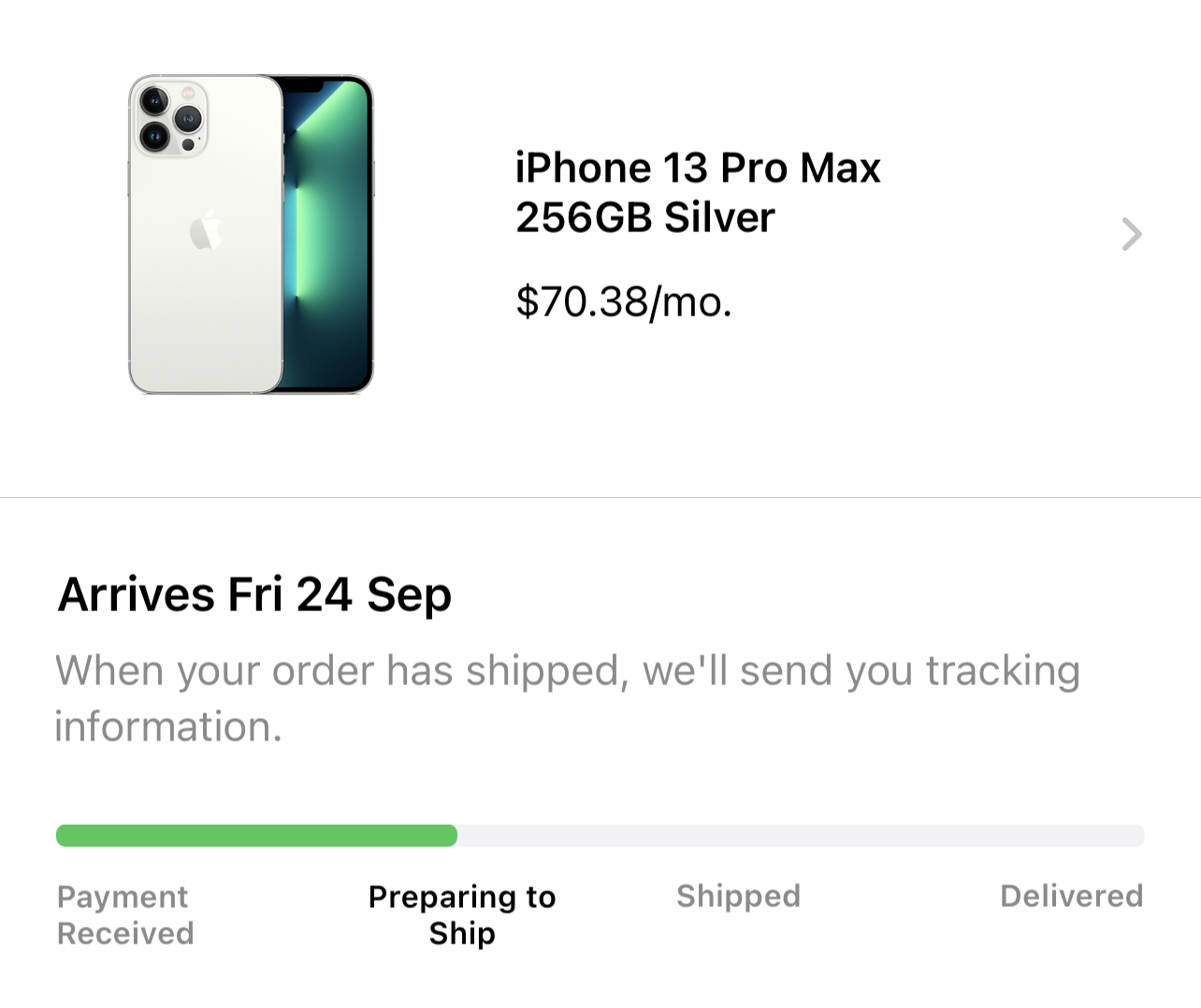 Ordered 13pm 256gb blue just after opening, order placed and email received at XX:02am Friday, status moved to processing after couple hours but still stay there now. Paid with account balance with credit card, account balance has been deducted this morning as well as pending charge on credit card. Waiting for shipment i guess…