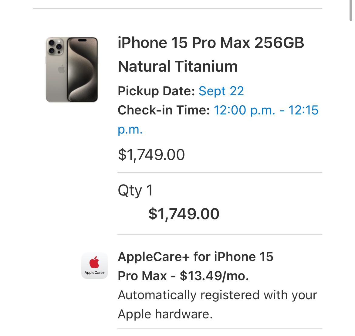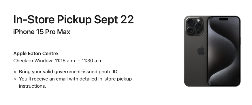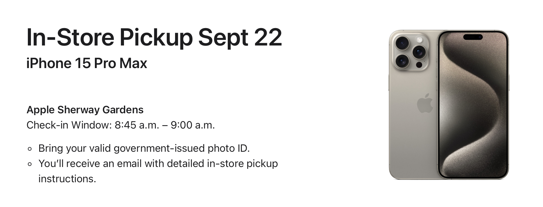 I finally got in the store and have a delivery date of October 5-11. Which is ok for me as I will be away from September 21st-27th. Ordered the 15 Pro Max 256 in Natural Titanium