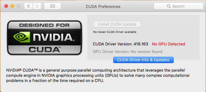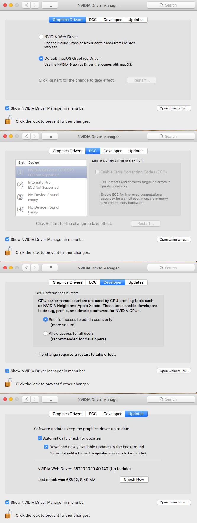 I've booted into safe mode and can see the CUDA and GPU driver versions. My graphics card displays correctly as Nvidia 980Ti in the About this Mac window. However, I can't open the Nvidia Driver Manager (it tells me to re-install) and the web drivers package refuses to open with the same error message as in the original post. I can't boot normally at all - it sticks at a black screen.Strangest thing just happened. I've been trying and failing to boot into safe mode so I could follow (i.e. fake my way through) the patch instructions earlier in this thread. I disabled global checks again first and then after two failed safe boot attempts, I restarted and booted normally. The CUDA preferences pane was the first thing to pop up on my screen. I'm also able to access the NVIDIA Driver Manager. However, none of the GUI problems have been solved and I still can't run any of the installers. Here's what I see: