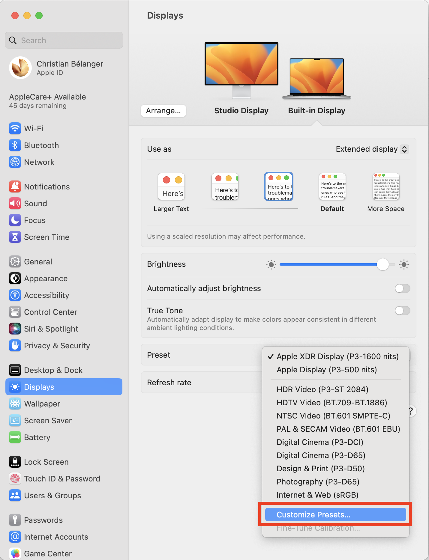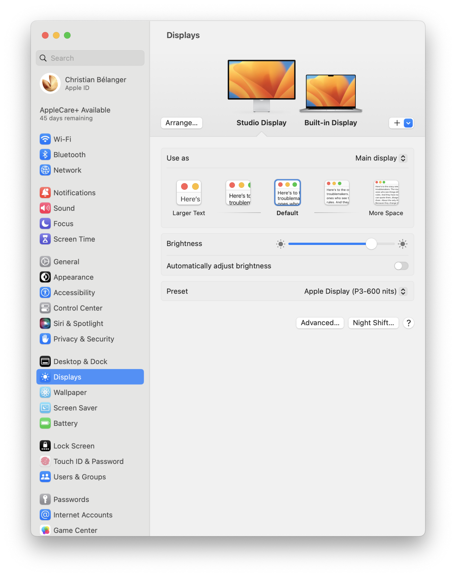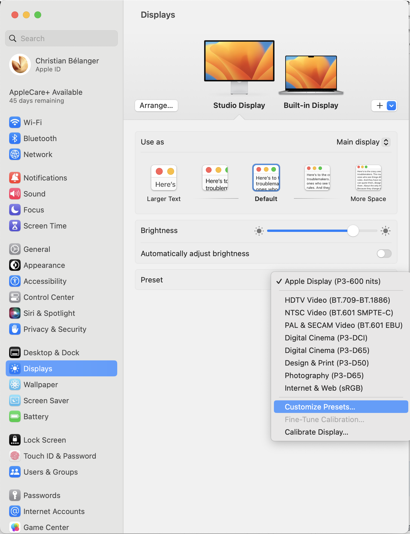 - - I tried that, and unfortunately, it affects both displays at the same time. I asked the Flux community if there's a way to ONLY affect the Studio Display, but my question has been in queue for 4 days now.