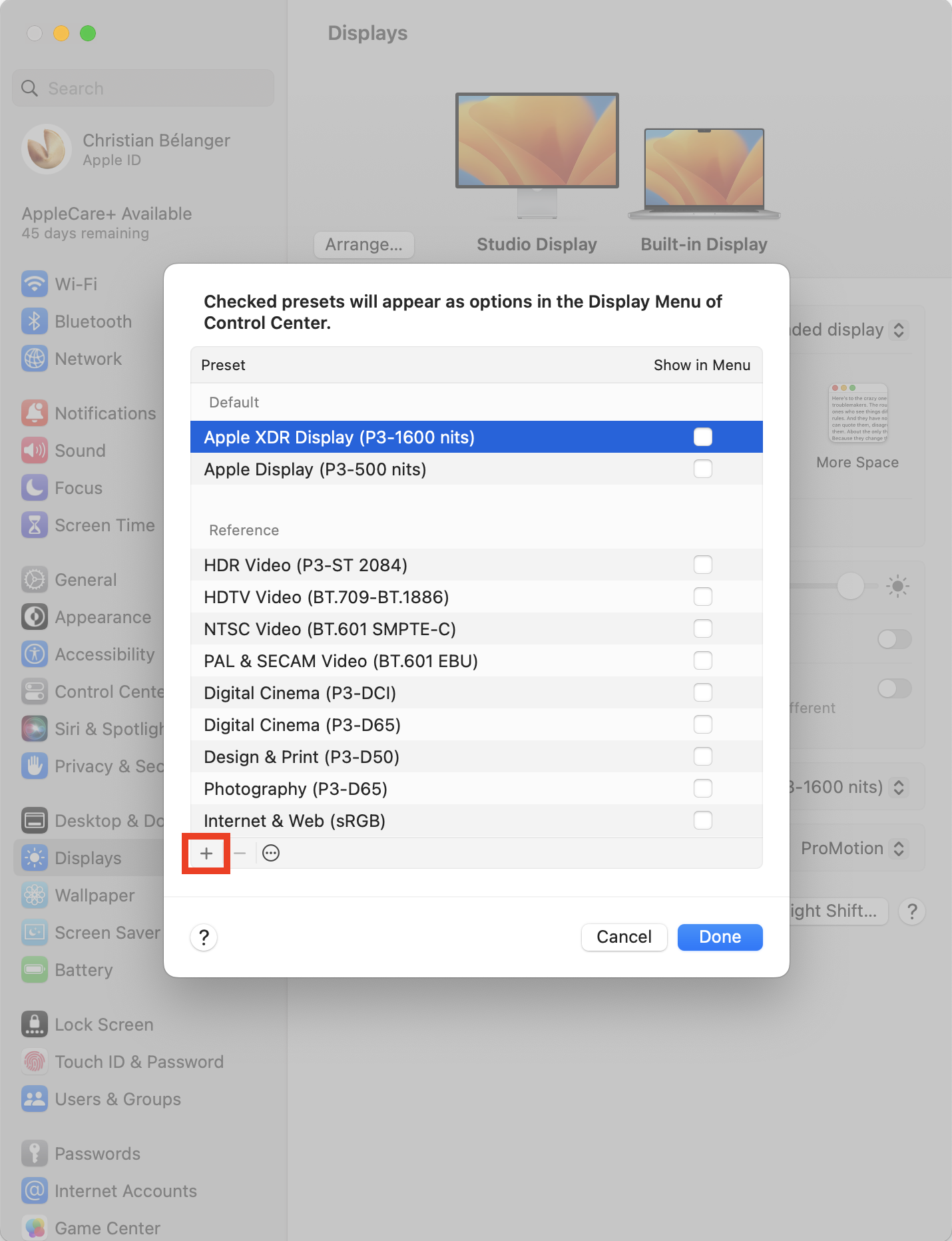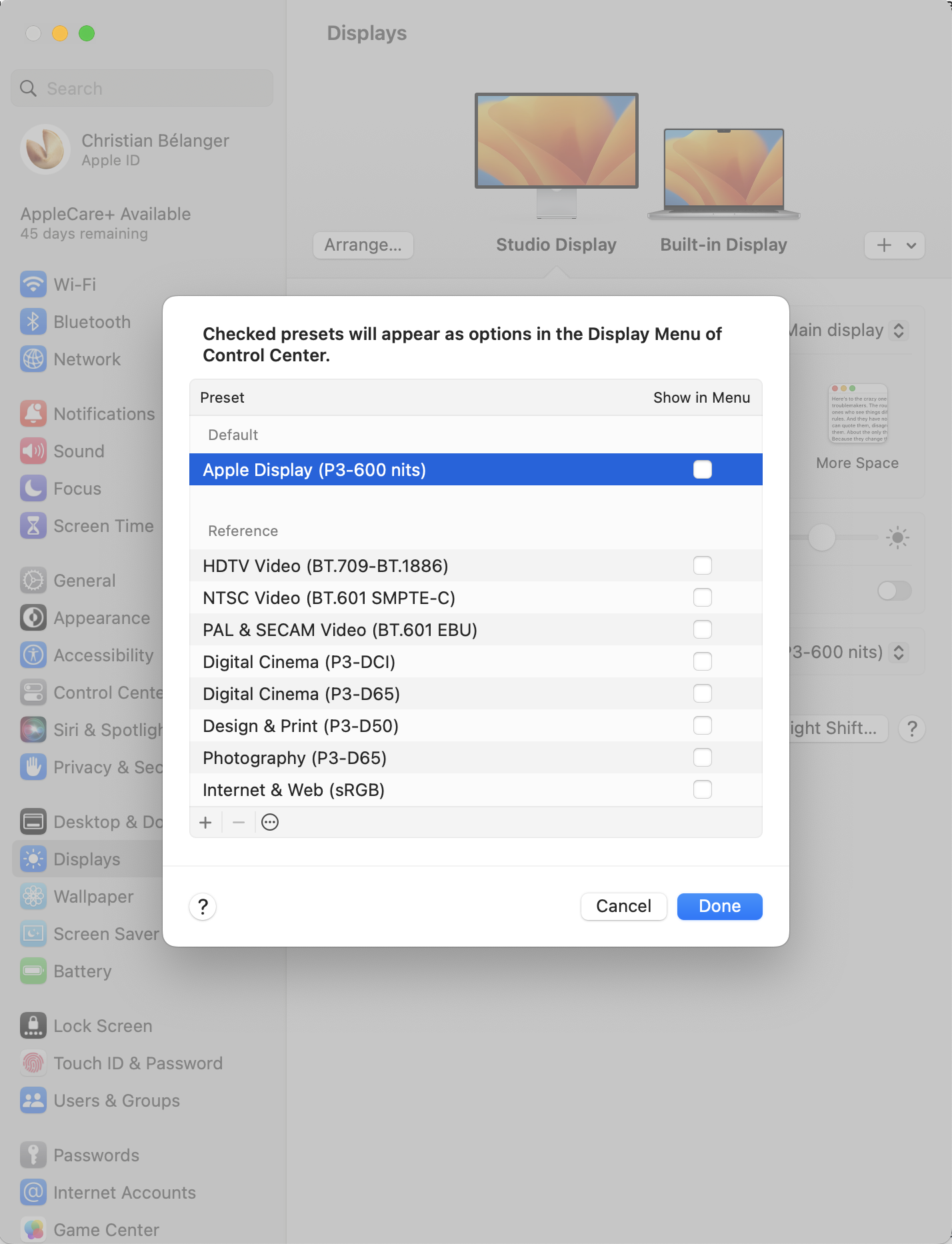 Is there a simple way to make the Studio Display warmer without affecting the MacBook Pro's display?