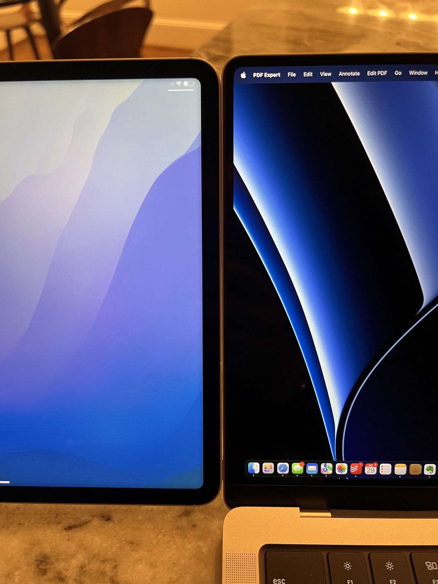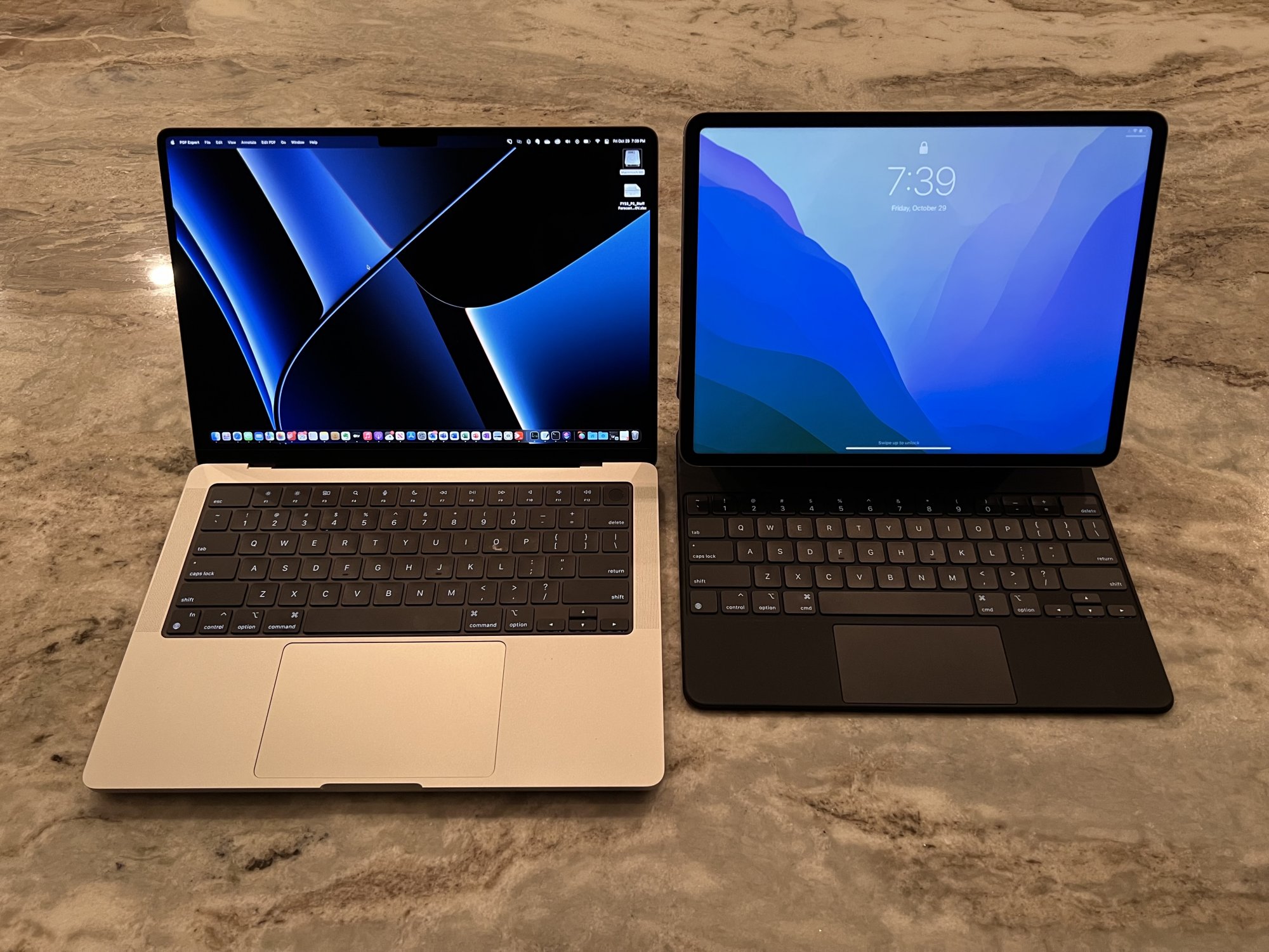 For context, here are a few photos of 14" and 12.9" M1 Pro. Exactly the same screen height, but 14" is about 1" wider than iPad.I would like to see the 14 inch next to the 12.9 iPad.