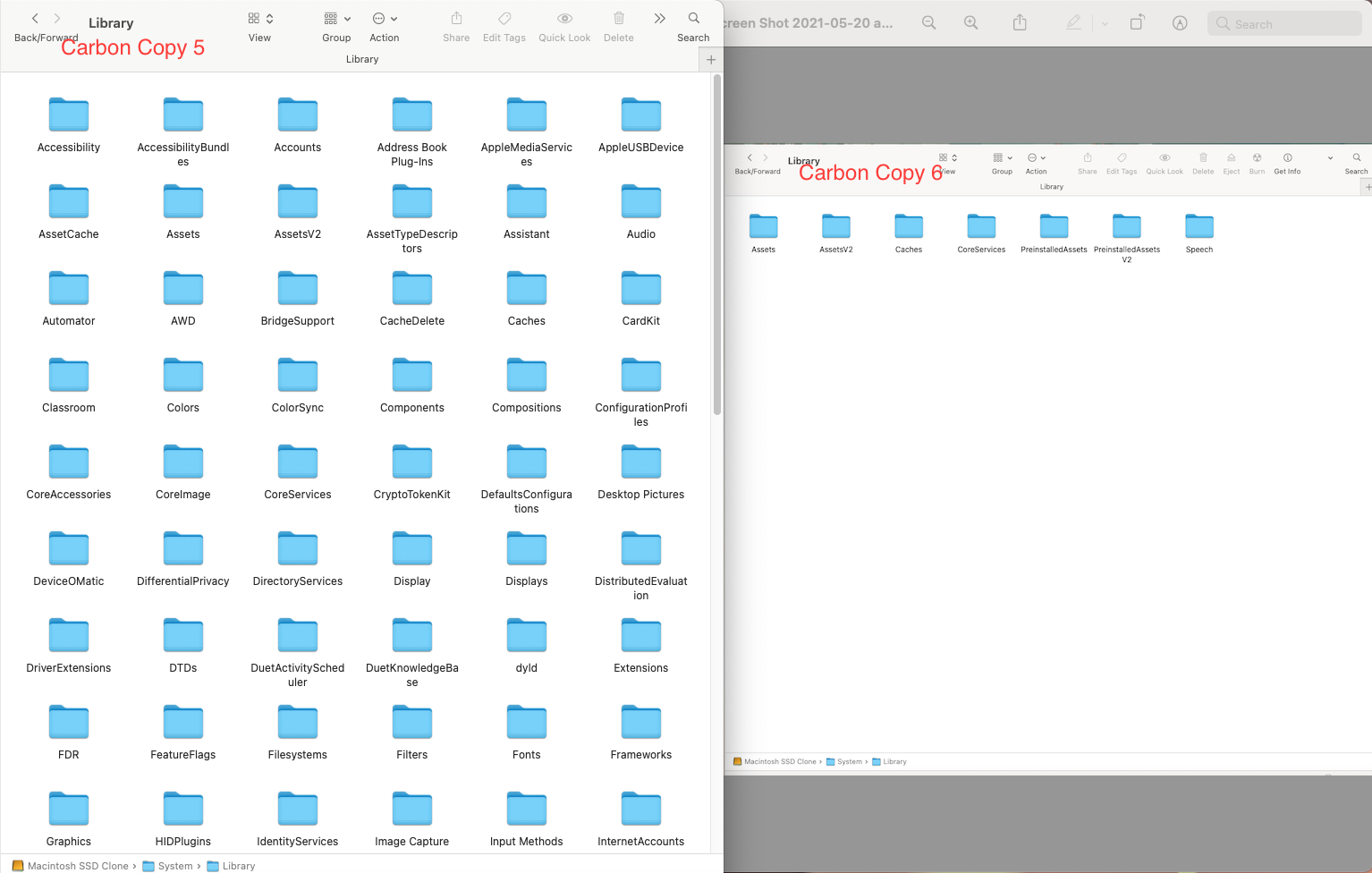 The default mode in CCC v6 is to copy only the Data volume not the System volume. Was your CCC v5 clone a Data volume only?I just did a full clone using CC 5 and then CC 6 after wiping the back up SSD drive. Tried CC 6 and compared what it copied in the System/Library folder and it seems CC 6 copies less over folder wise than CC 5 did ( I took screenshots )