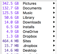 My issues is how much space I have for my home folder. I touched upon how much my Library folder consumes, but I don't think I mentioned the other folders. Here's the latest screen grab of my space usage: