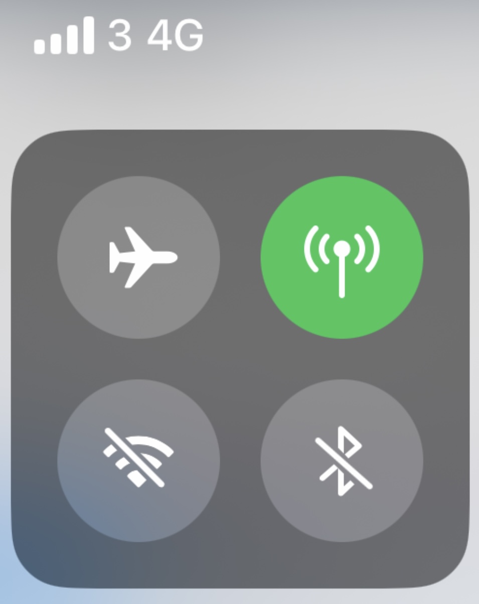 I recently noticed in the top right-hand corner swipe down menu (I forget the name of that menu…) the cellular icon is “greyed out” compared to the white on the other logos.