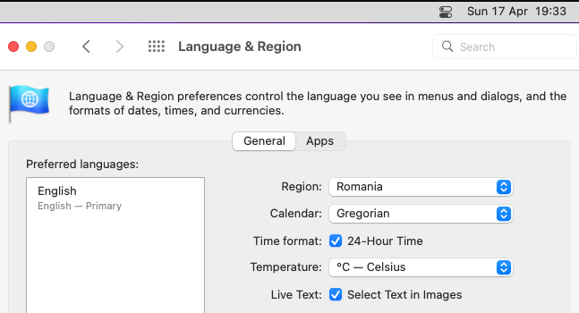 my menubar clock always shows weekday/month/date (ie "Sun Apr 17"). anyone know of a way to change it to "Sun 17 Apr"? am used to using that format everywhere else, but can't seem to change it in the menubar (i've tried in system preferences>menubar & dock, and sys prefs>date & time)...