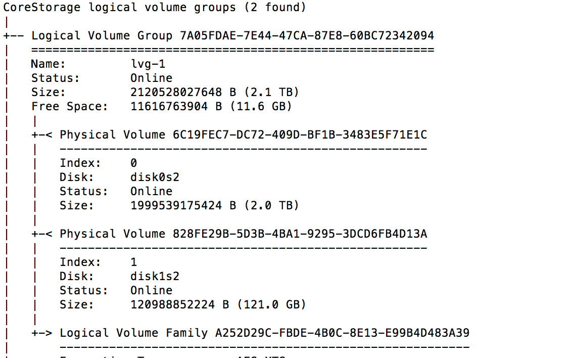 +-- Logical Volume Group A7283685-80E4-40C2-950D-53CA2134834E