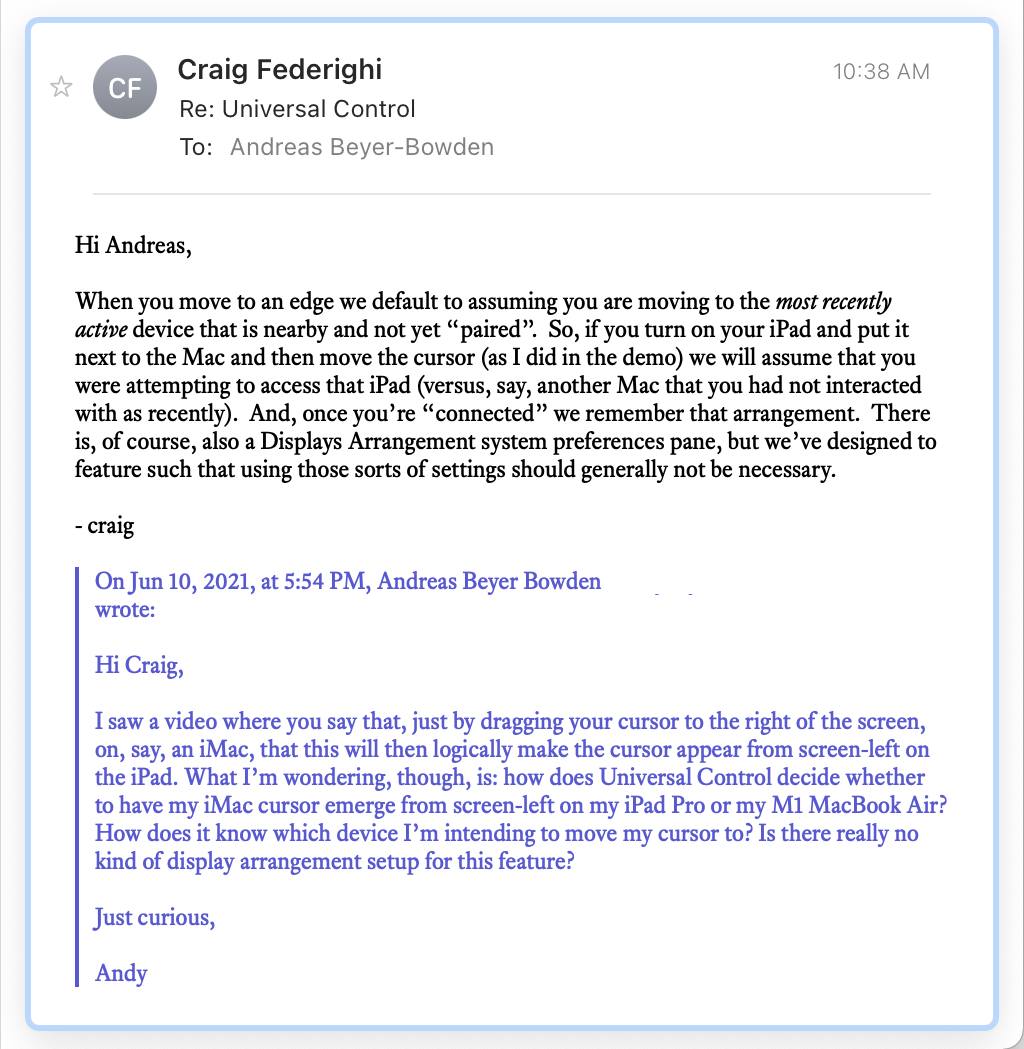 did you really need to post this though? his reply is what i'd have expected they done. it's quite common sense in how they've implemented it. no harm in you emailing them but this post just comes off as you bragging. oh look at me i got an email from craig. congratulations