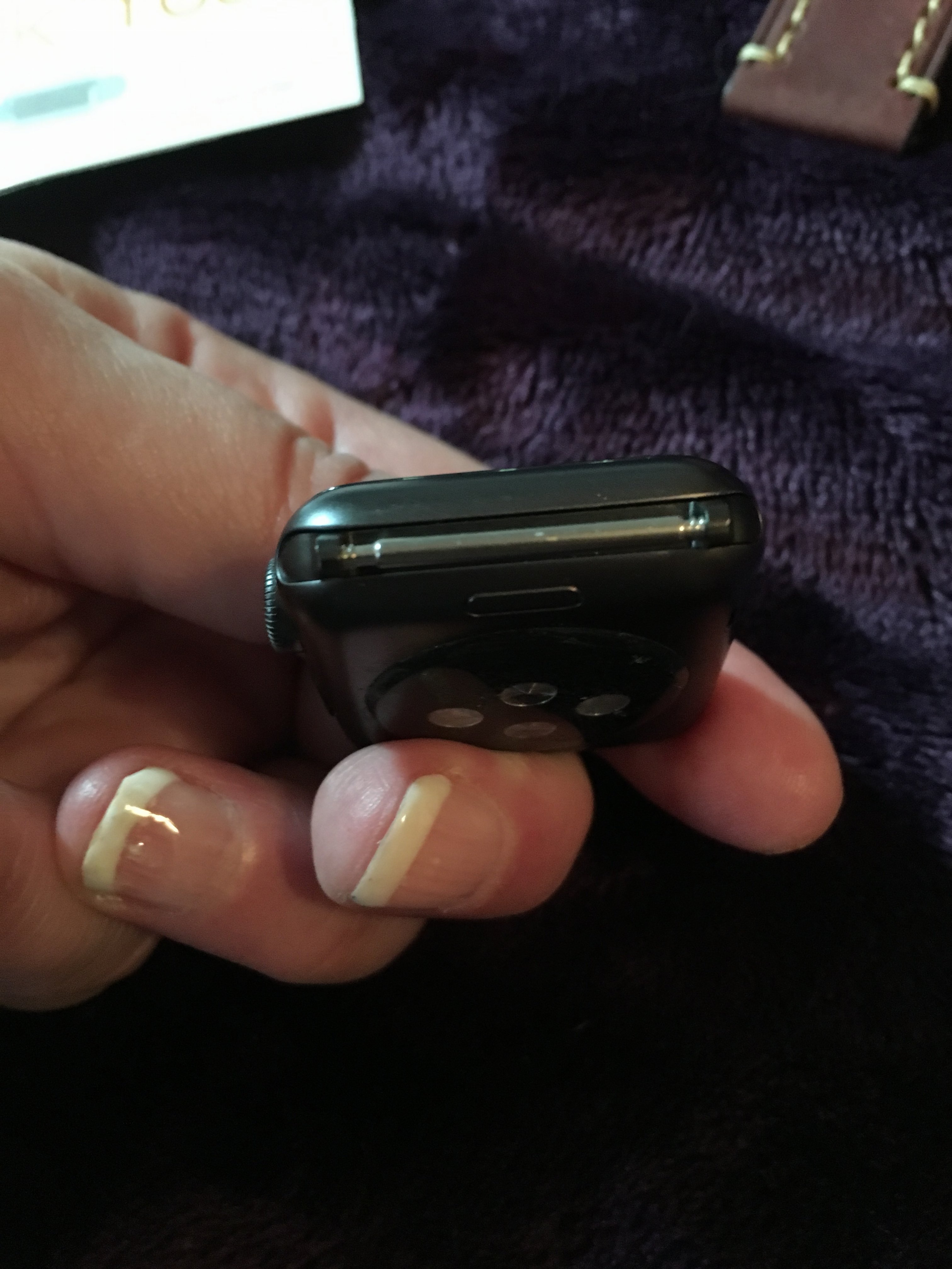 Since wearing it for a while after assembling things, I've noticed a slight reflection coming off the edge of the adapter where it protrudes from the slot in the watch. This is disappointing. Now, keep in mind, in the last picture (the one after the collage), that this is very much a closeup, with a very bright light shining at just the right angle to make it look as bad as possible (showing up as the bright line across the middle of the picture). If the body of the adapter were just a fraction of a millimeter thicker, it could have fit perfectly. I expect this could be the result of a safety factor (better to have it just a touch too thin than a touch too thick and then not fit at all), if their manufacturing partners can't hit quite close enough on the tolerances. (This is where Apple totally wins, in general, on manufacturing tolerances, by having full-time on-site staff to keep an eye on tolerances and quality all the way through the process, vs. visiting occasionally, and also by investing time and personnel in custom making tooling to meet their needs as necessary, vs. using what's available).