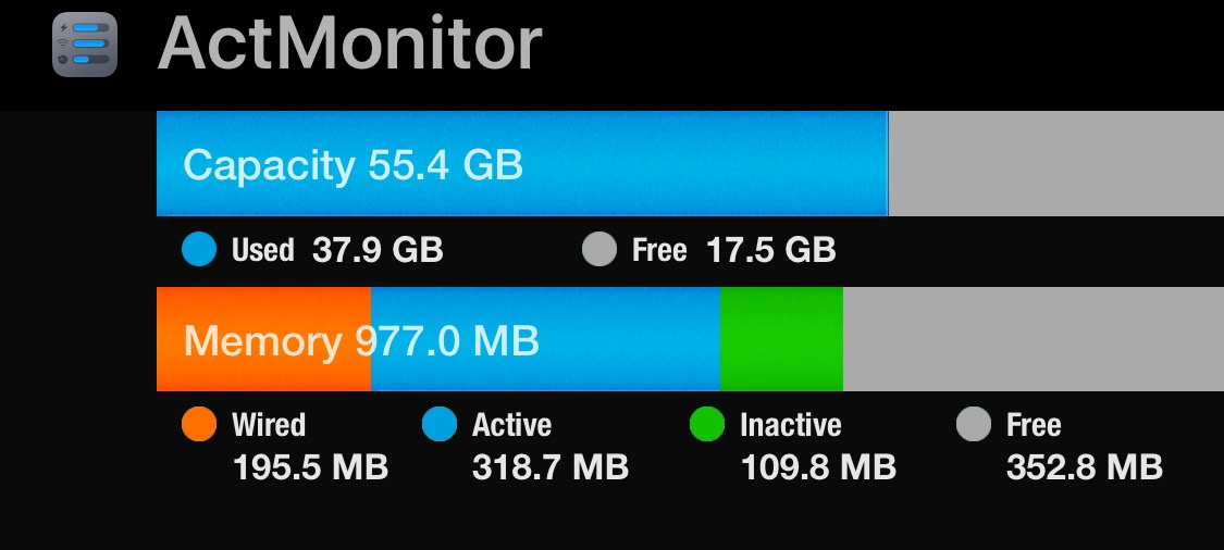 Here's how much free RAM is available on my iPhone with 21 apps "suspended" in the background in the App Switcher (41.8MB)