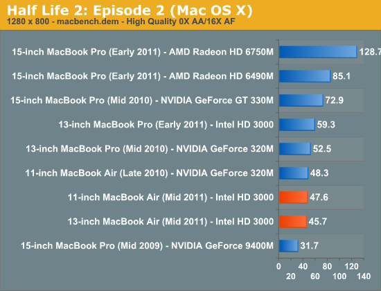 ...which makes me slightly sad that 320M Macs never went beyond 2.66 GHz. There was a 2.8 GHz P9700 if the 3.06 GHz T9900's TDP would have been too much for the machines in question (2010 13" MB/MBP; MM). Curiously, Notebookcheck lists an Acer laptop that supposedly shipped with the 320M... and a Nehalem, despite the chipset being for Core 2 Duo only. Probably just a typo (there's a discrete GT 320M as well), or... *x-files theme*The 320M is likely just more powerful than HD3000 in some respects.