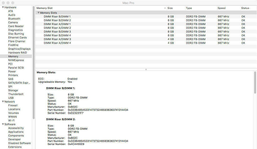 By the way - if you wish to utilize the maximum memory performance using 56GB (6x 8GB and 2x 4GB) in the 3,1, install the 2x 4GB modules in memory slots A3/A4 on Riser A as Riser B should be maxed out with the 8GB sticks due to the fact that it is assigned branch 0 in the north bridge memory controller and Riser A is assigned branch 1 - see attached diagram and screenshot of system information/memory.