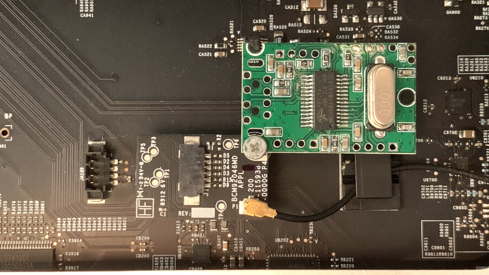 Eventually the existing little BT controller (BCM92046MD) will be replaced by the WiFi+BT combo card (BCM943602CDP).