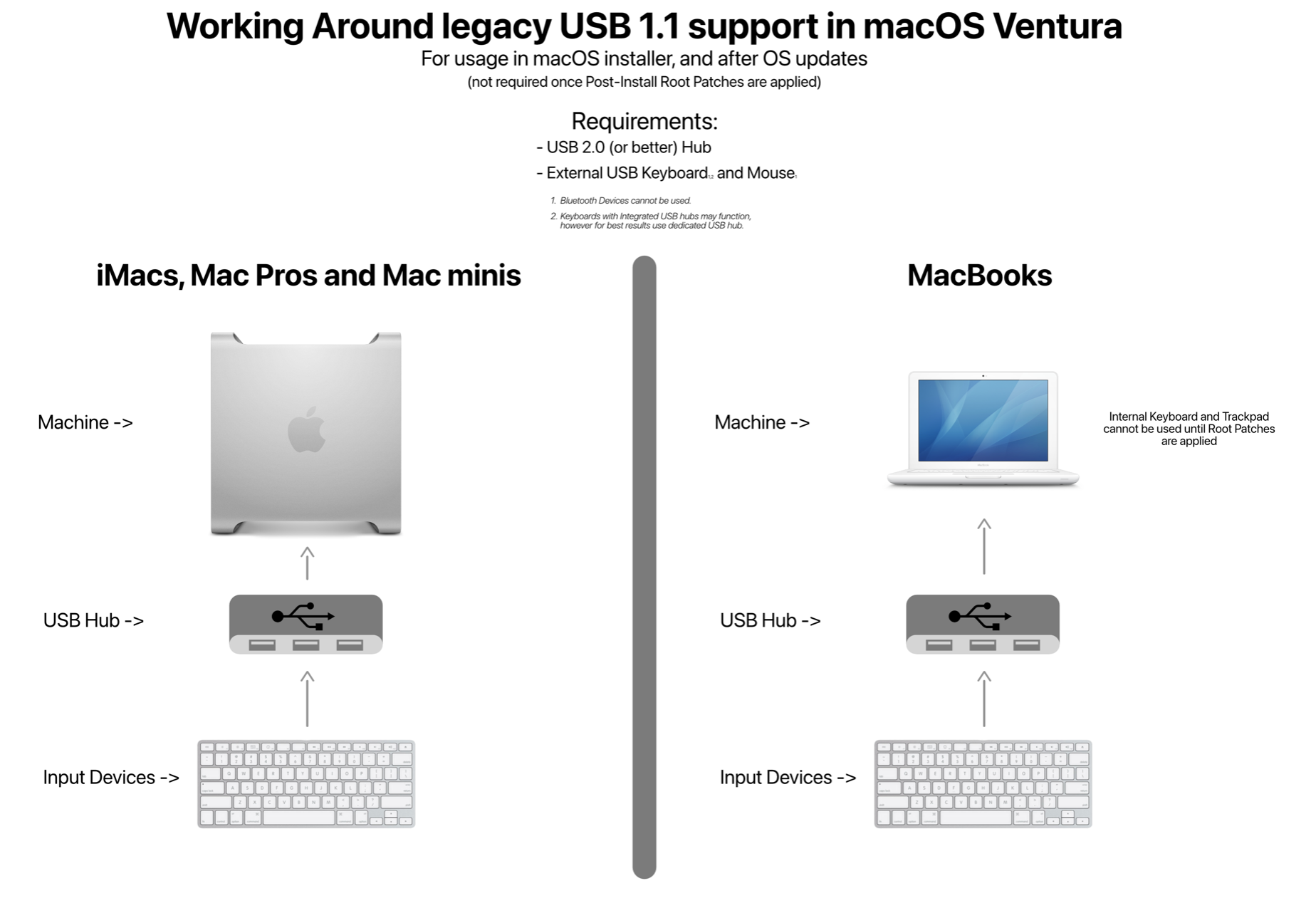 The idea is to attach the BT controller on the Upstream of the Hub so that the Logicboard's USB controller "sees" the USB 1.1 peripheral and attach it so that macOS uses the EHC drivers thus satisfying compatibility requirements.