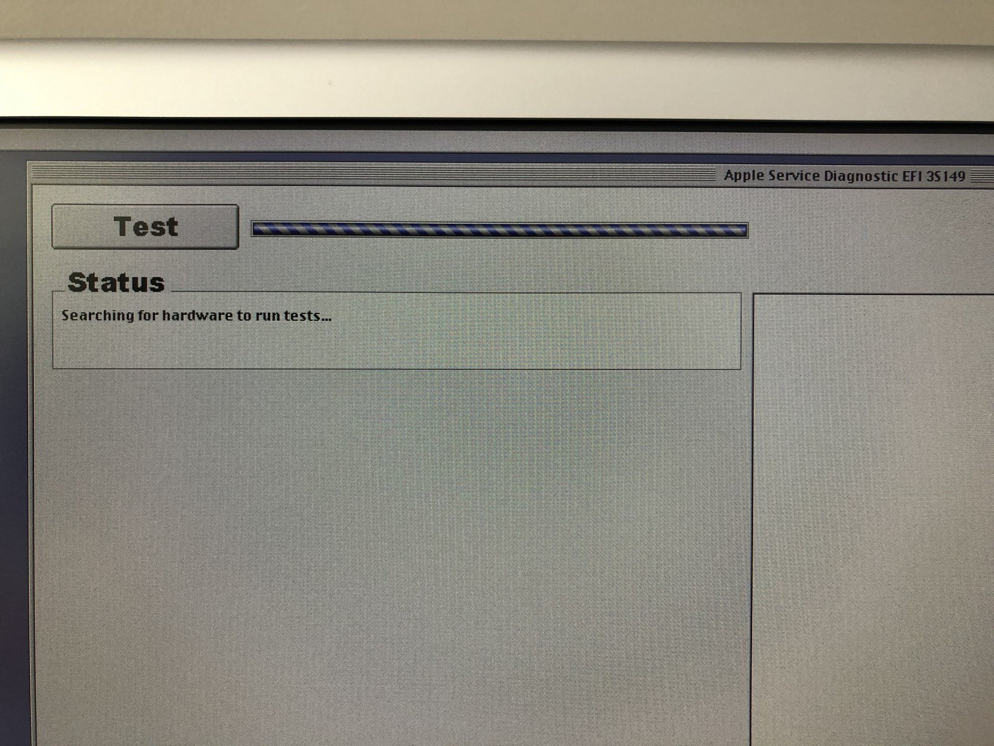I keep a 3.33GHz single-CPU processor tray in the shop for testing purposes. I removed the Sonnet USB card and the dual-CPU tray from the system and installed the 3.33GHz tray. I got the same result; the AHT will not complete the hardware probe.
