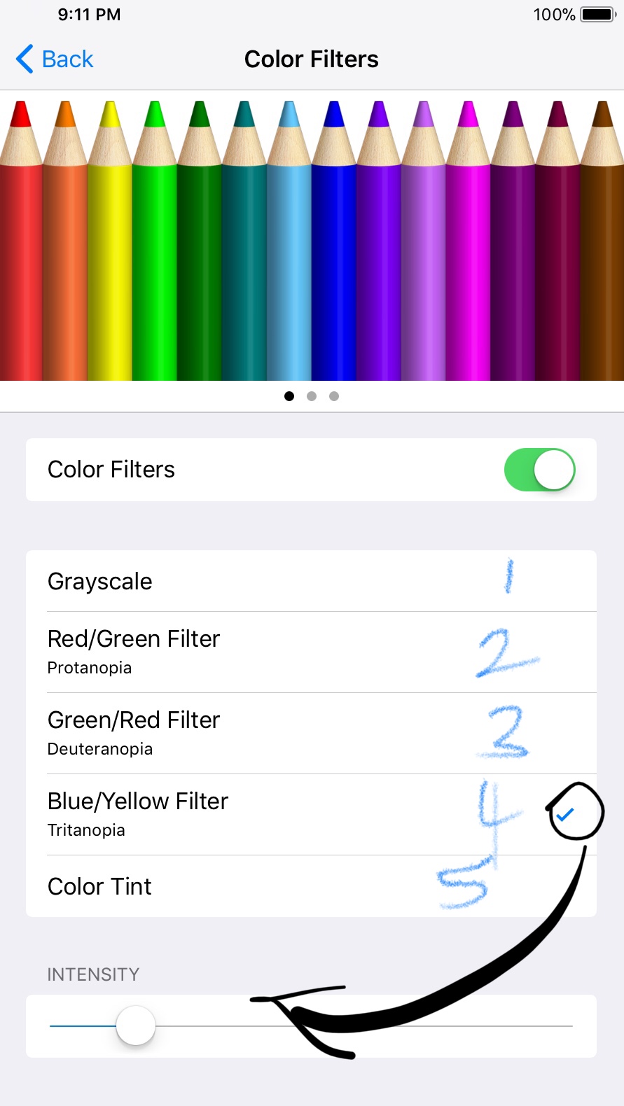 But you found the plain screen too blue, so you played with the accessibility filters. But it was tricky to find just the right soft white color you’re after. Not too blue. Not too yellow. Not too red. Not too green. Just the right clean white with a tiny hint of warmth to take the edge off.