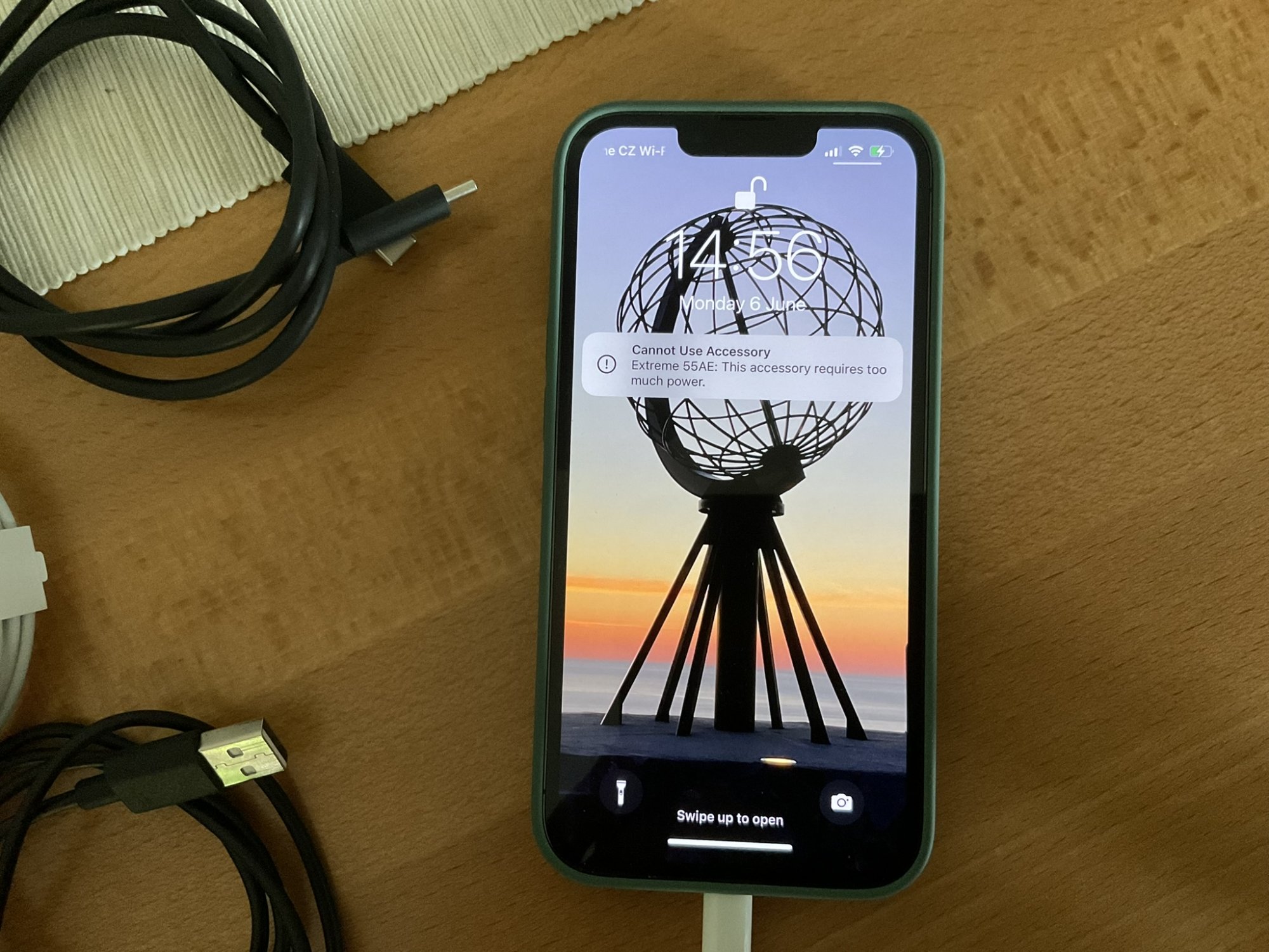 Any ideas? it worked with the exact setup as shown in photo. I then tried several other cables for the SSD and charging, even powering the Apple Lighting to USB 3 Camera adapter with 20W charger straight from line. No success.