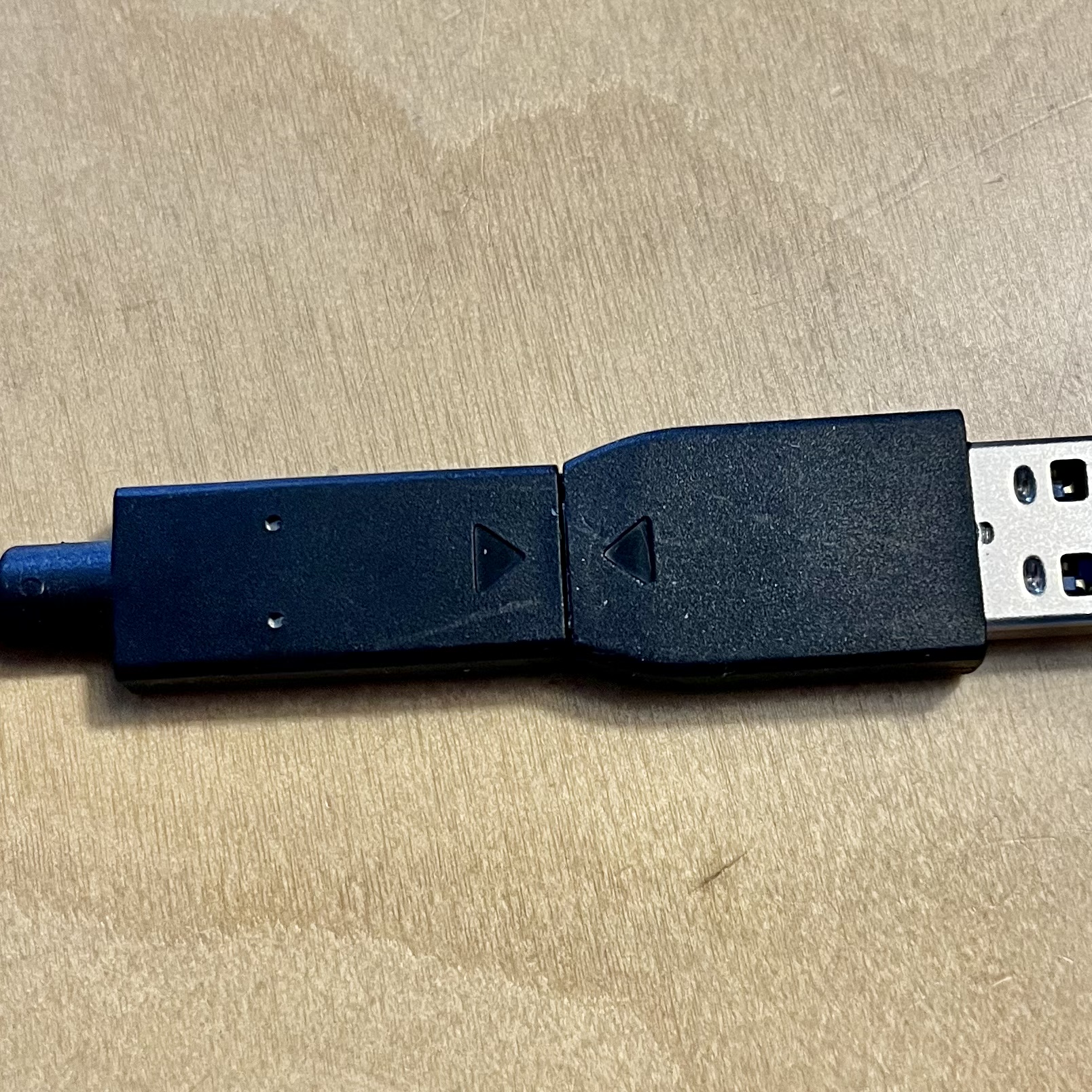 3. USB-C cable flipped on this side, hiding the ▶ ◀ marks (got to chop the corners to fit in iPad case :D)