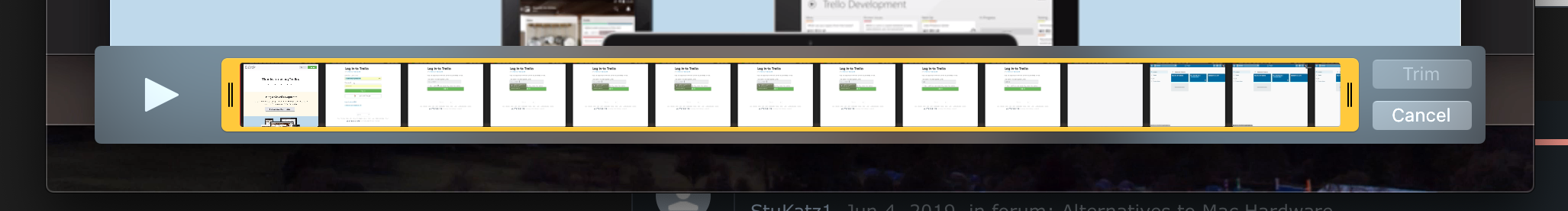 A minimalist window playing a video. The QTP timeline with i/o handles below the video is not much of a distraction.