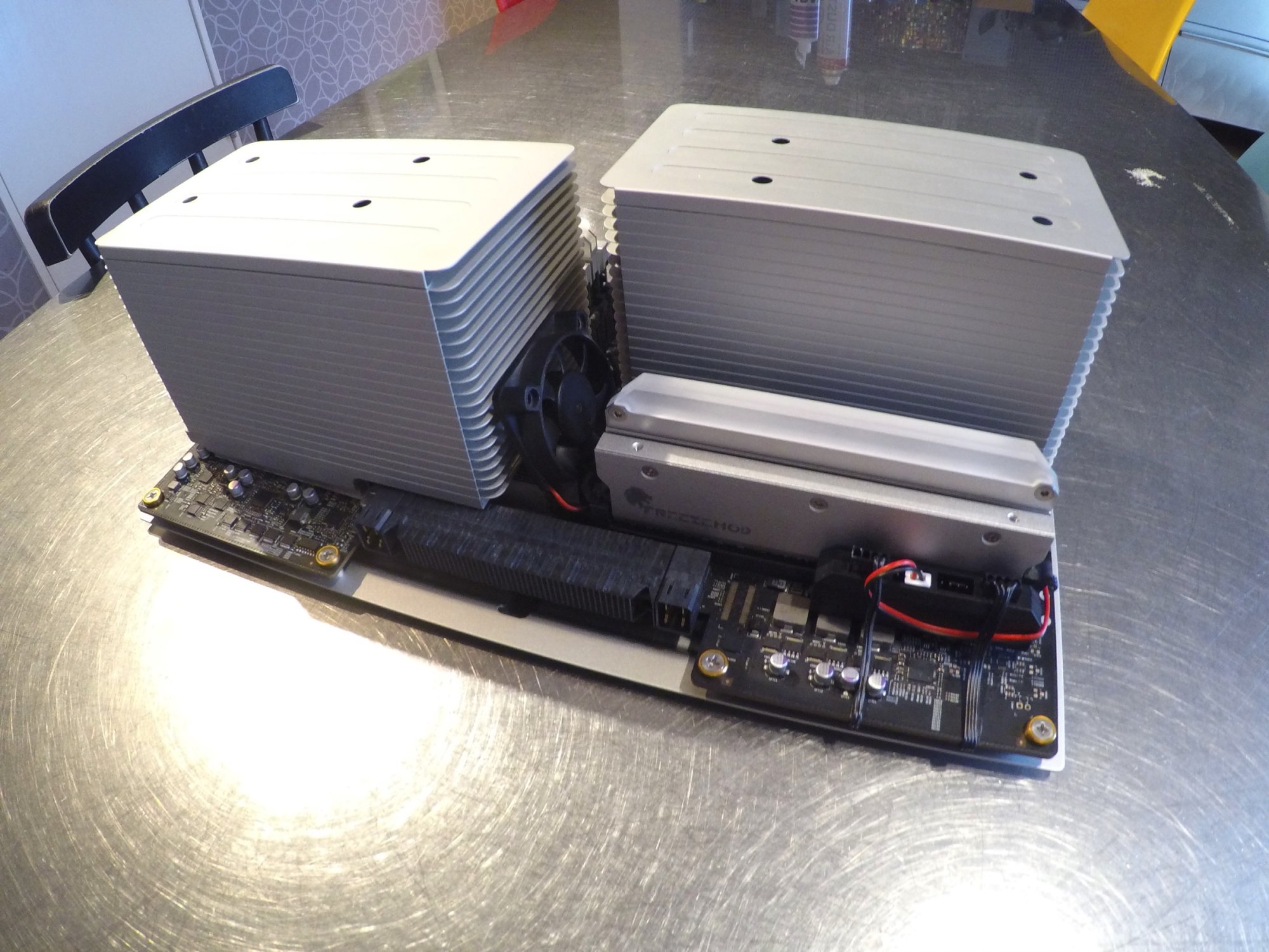 Thanks for the Link I haveThen I started adding in mini fans. I tried 5 different fan sizes, ranging from blower types, to tiny 3cm fans. Testing with those, the 4cm fan came out on top for cooling, though the 5cm was close, and much quieter. For now I am using the 4cm fan (10mm thick). The thinness helps in getting the fan to point down on the bulk of the heatsink.