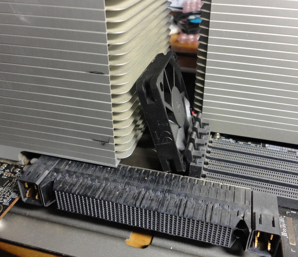 This fan mod apart from dramatically reducing the Northbridge chip temps, contributes to an overall cooler CPU tray area and noticeably lower temps throughout this space.