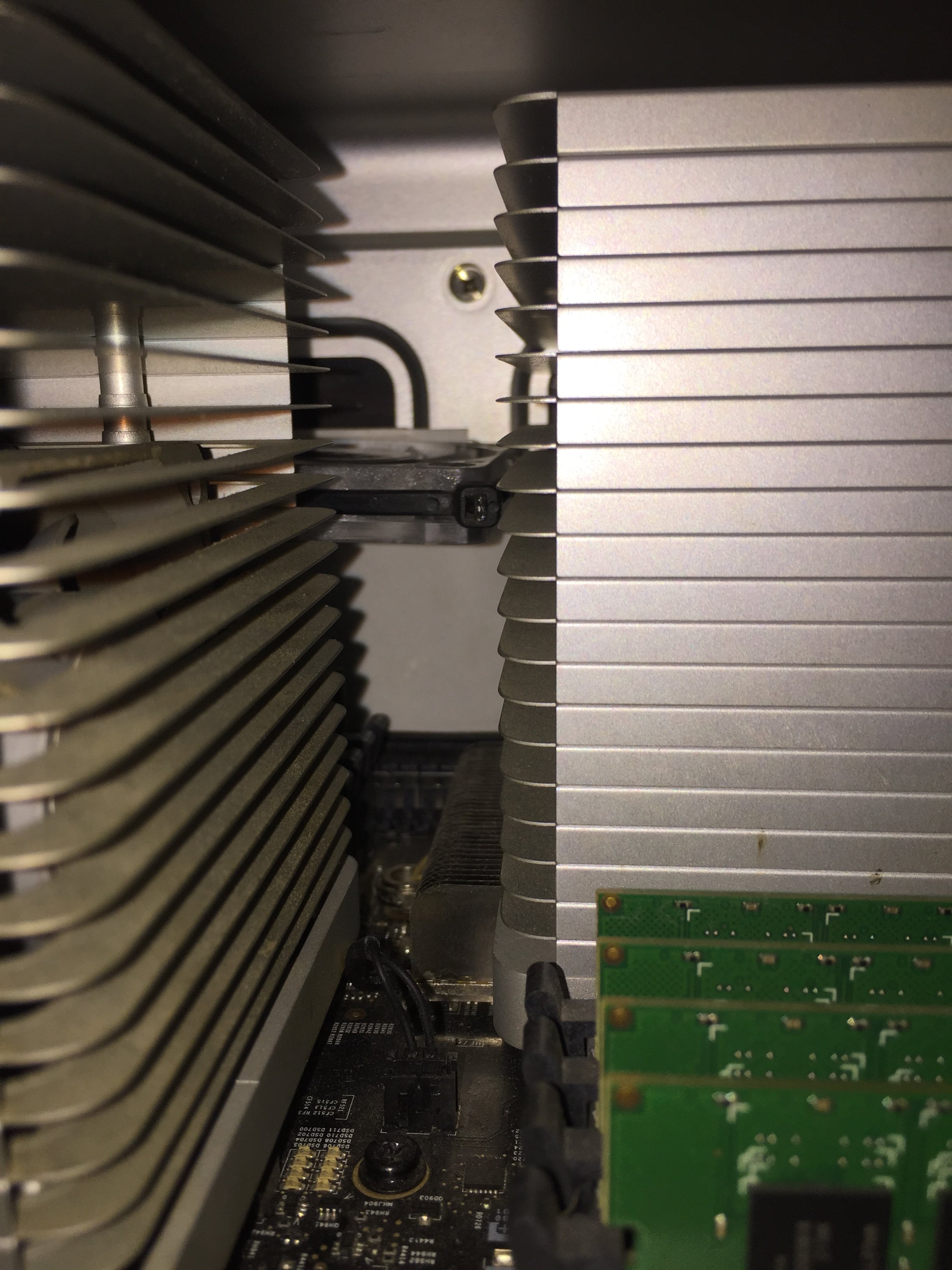 You can run the SATA cable ( extension ? ) down to the CPU tray area and will be able to close the side cover. The Sunon fan comes without a connector - you need to solder the SATA cable to the fan wires.I have an adapter changing SATA power (2nd SuperDrive) to 3-pin fan connectors.