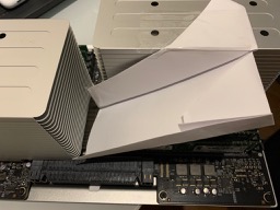 VL805 2 port PCIe USB 3.0 card ( supported by Mojave 10.14.6 ) to power two other USB powered fans - one is for the Samsung M.2 970 EVO. The other is for RAM banks 1 ~ 4 in front of CPU A. As summer has peaked here in Japan I m not using them at the moment.