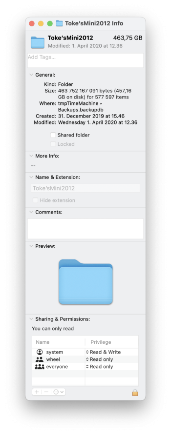 2022-09-18 17:53:07.172389+0300 localhost backupd[254]: (TimeMachine) [com.apple.TimeMachine:Inheritance] Found matching machine store '/Volumes/aikaKone2token/Backups.backupdb/Toke’sMini2018' for computer named 'Toke’sMini2018', no machine store inheritance needed