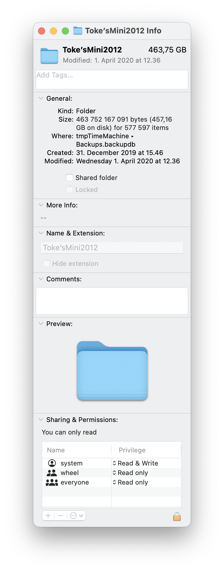2022-09-18 18:16:43.570195+0300 localhost backupd[254]: (TimeMachine) [com.apple.TimeMachine:Inheritance] Found matching machine store '/Volumes/aikaKone2token/Backups.backupdb/Toke’sMini2018' for computer named 'Toke’sMini2018', no machine store inheritance needed