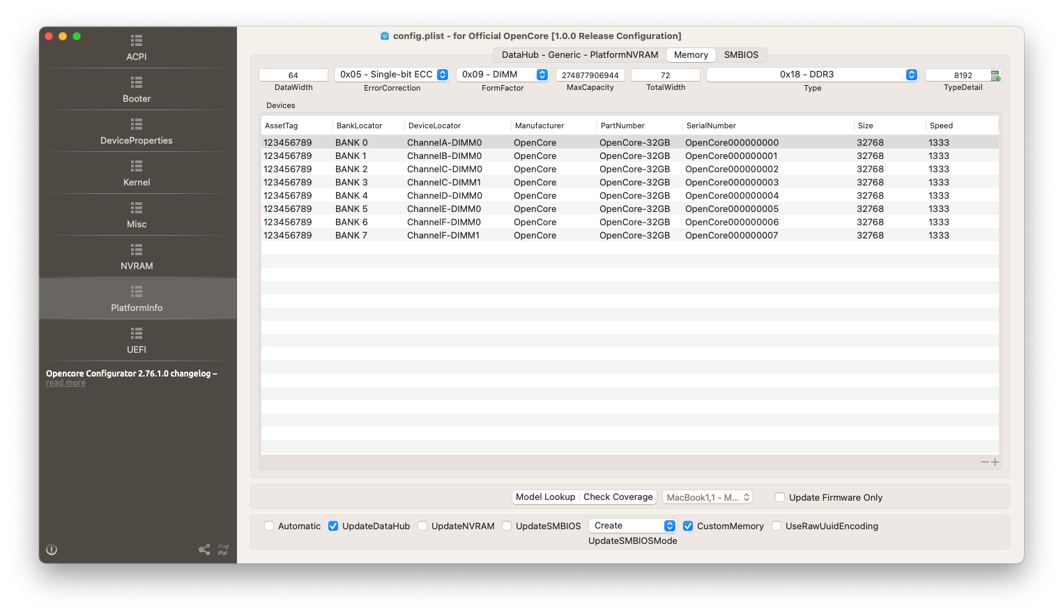 Using OpenCore configurator to edit the plist, attached is the memory tab