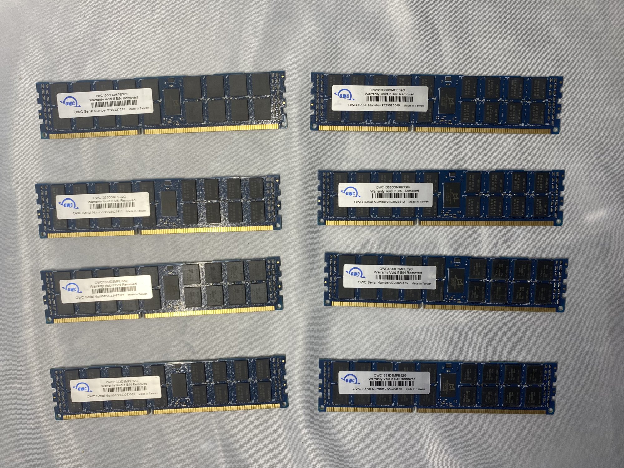 ending in L or LR i.e. PC3-10600L or PC3-10600LR ("Load Reduced"). They are not compatible and the Mac won't see / use them.