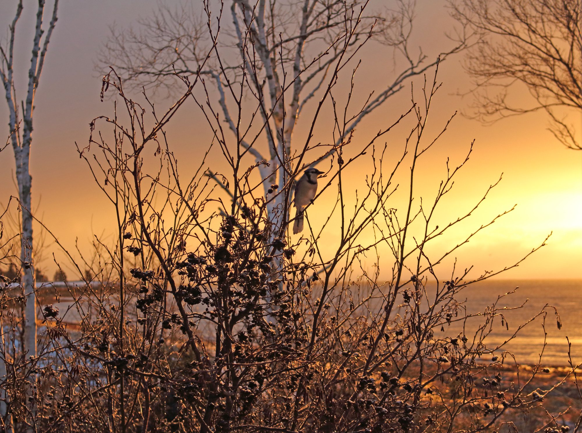 Next question: cropping. What would you say is the best crop for something like this. Is it best to crop in to make the blue jay bigger and lose the sun/beach/bush shape - or leave it as is?