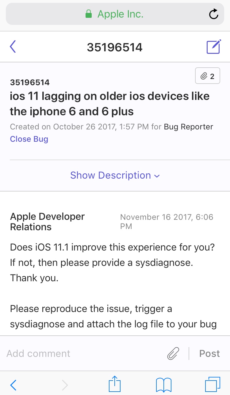 [doublepost=1512492285][/doublepost]View attachment 740376 View attachment 740377 View attachment 740378 my report to apple bug reporter haven't seen the fix for lags and stutters yet so i'll keep texting them until we see a better change on ios 11