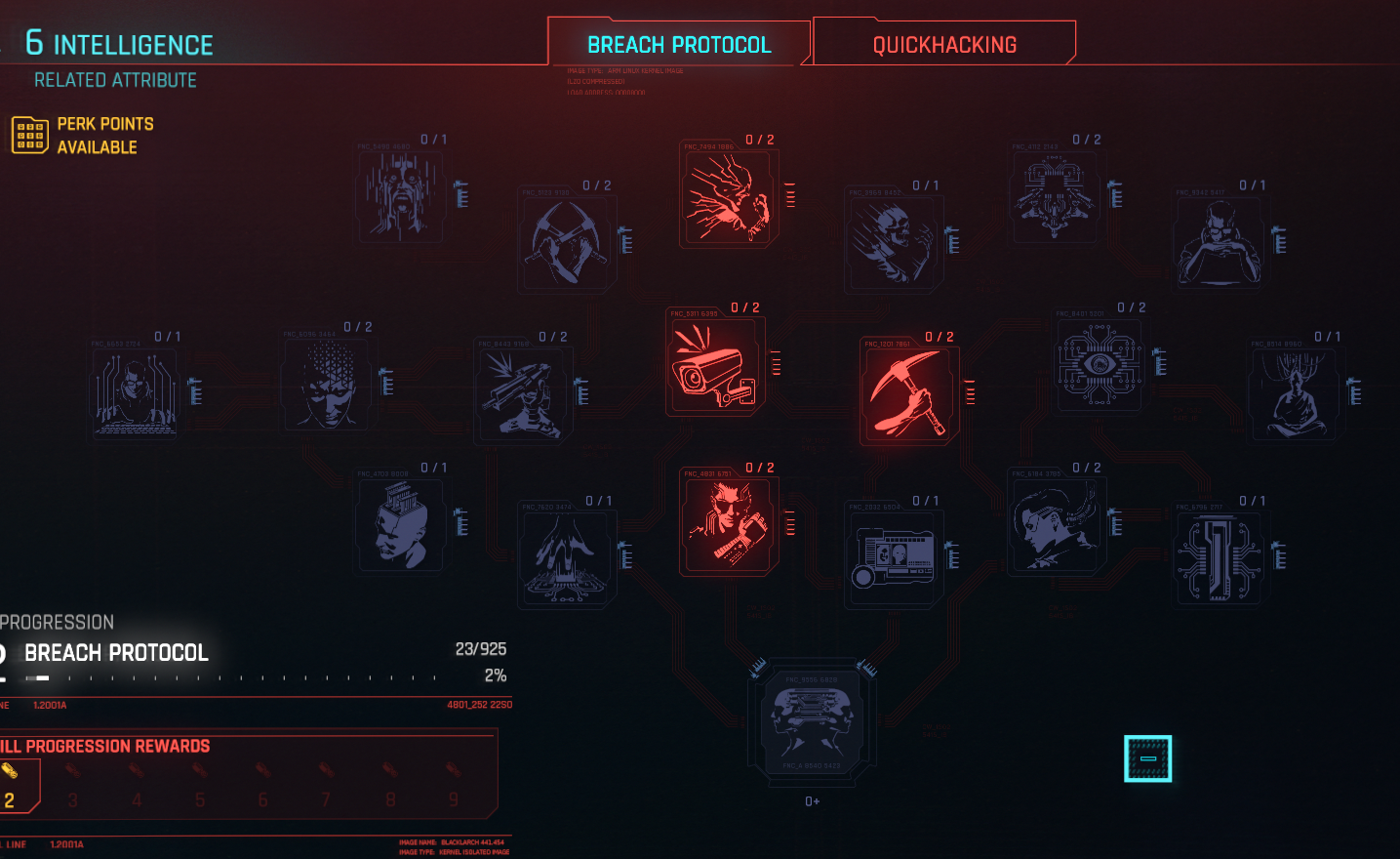 • Intelligence: Breach Protocol: Big Sleep- Disables all cameras in the network for 3 min.