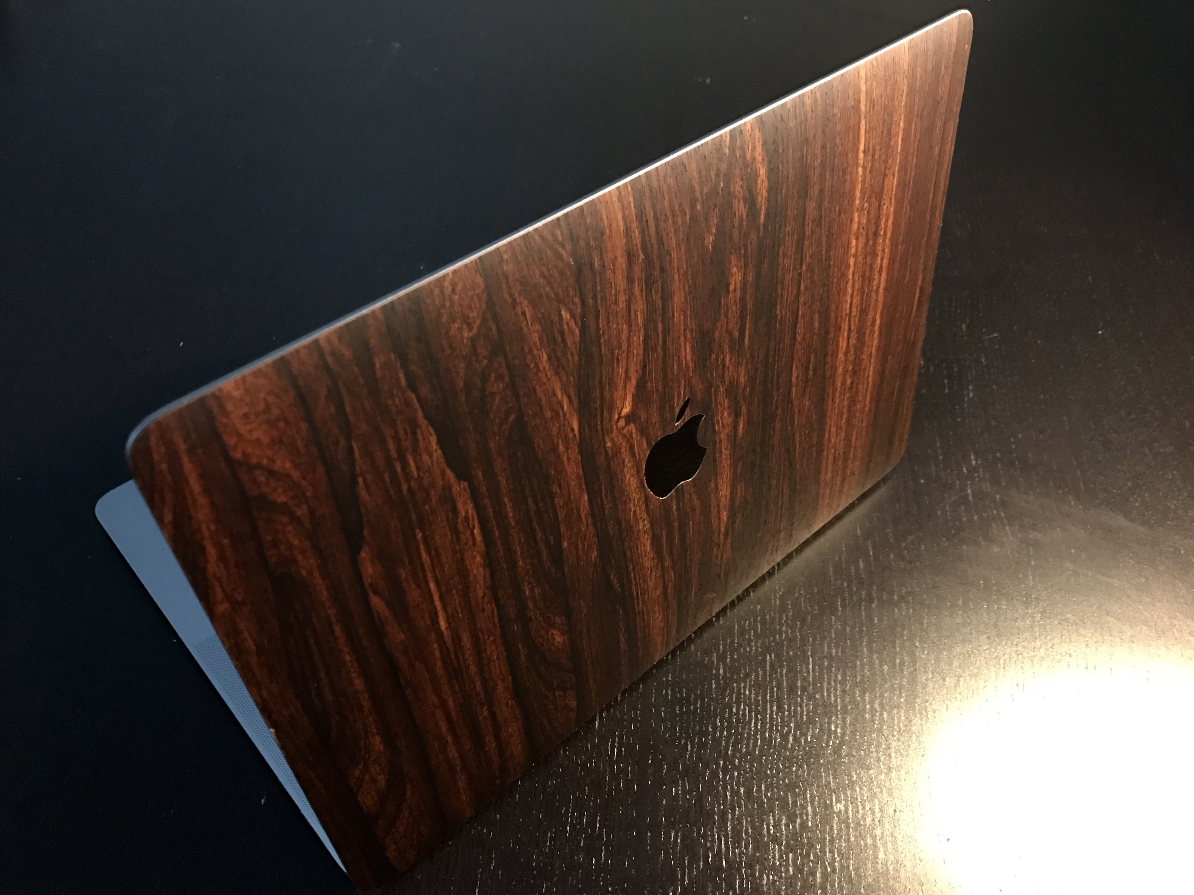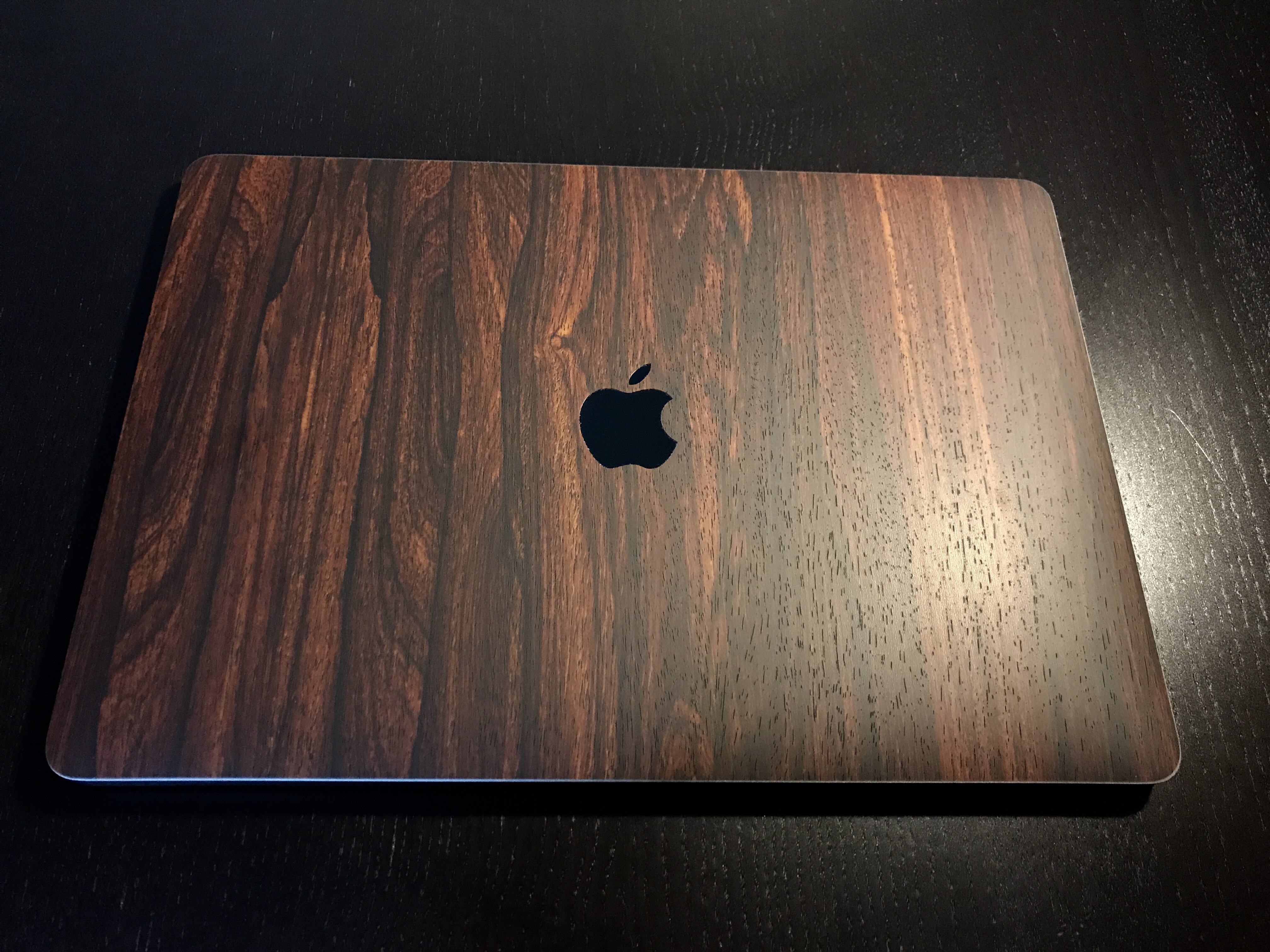 In case anyone is interested in buying a Dbrand skin, here is the mahogany MacBook Pro skin on my 13" TB model with a black leather trackpad.