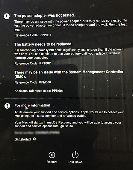 But, looking into those reference codes that you found after running diagnostics - PFM006 and PPN001 - are pointing to possible hardware problems. Other mentions on the 'net about those codes sometimes find that the battery may need to be replaced (and your test also reported that the battery is holding significantly less charge than when it was new. If you have not inspected the battery recently for swelling, that might be a good plan to check that ASAP.