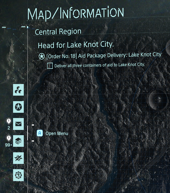 The player controls Sam Bridges, a porter for a company known as Bridges. The player is tasked with delivering supply cargo to various isolated cities known as KNOTs, as well as isolated researchers and survivalists, while also connecting them to a communications system known as the Chiral Network. The player is evaluated by the company and recipients based on their performance (including via "likes" similar to social networks), including whether the cargo was delivered, and if it is intact among other factors. These merits are, in turn, used to level up the player's statistics, such as stability and weight capacity, and increase their standing with individual locations and characters (which can improve rewards). How cargo is packed by the player, and the overall weight being carried, affect Sam's ability to navigate through the environments.