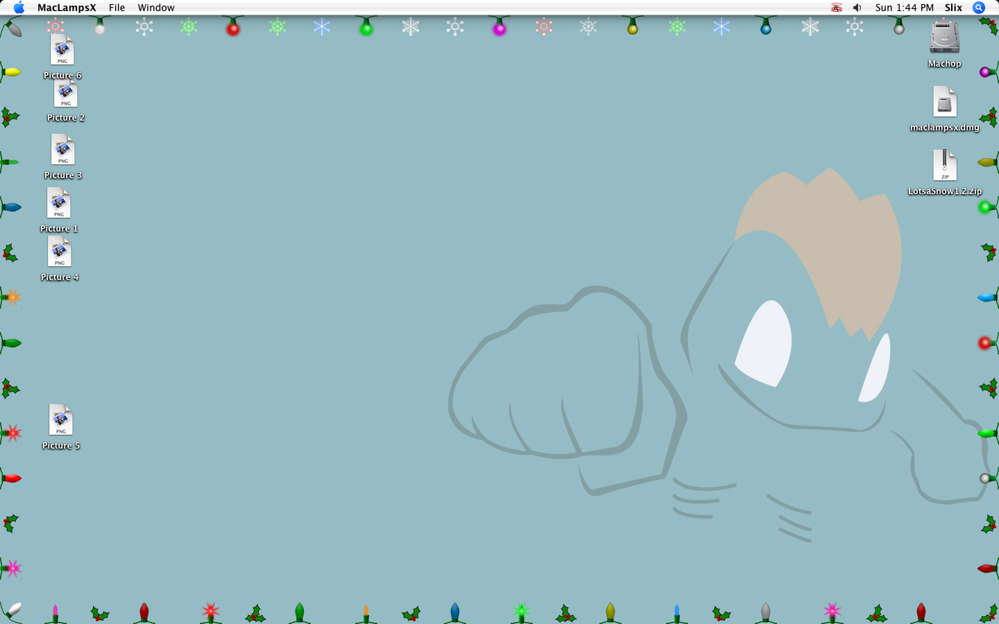 MacLampsX is a neat program that allows you to have strings of lights on your desktop, or on top of your windows when you're using your Mac. You can customize it with what types of lights or holly you want, and whether you want it to display on screensavers and other things like that. Version 2.0 works on G3s running Tiger all the way to High Sierra!