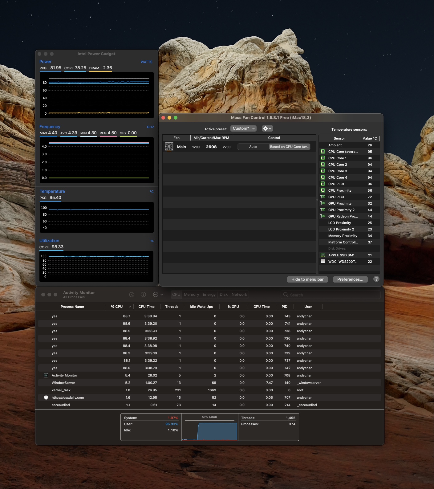 So I just recently upgraded my 2017 5k iMac to i7 7700k delidded with Liquid metal (thermal grizzly conductonaut) between the cpu die and IHS. Used nail polish to protect the transistors then resealed the cpu with gasket maker (used a very thin layer on 2 sides of IHS). Now before anyone flames away about how dangerous liquid metal is and delidding voids your warranty. I bought this delidded cpu used. Anyhow I then used Arctic MX-4 on IHS to Heatsink. My temps while idle ranges from 35-40C and when running Cinebench r23 it hits around 93-94C degrees. When rendering 4k video with FCPx temps shoot up to 95C and when exporting 4k video it hovers around 85C with the fans at full blast. Just wondering did my delidding worked? Seems like my temps are still quite high under heavy cpu load and I only lowered by few degrees.