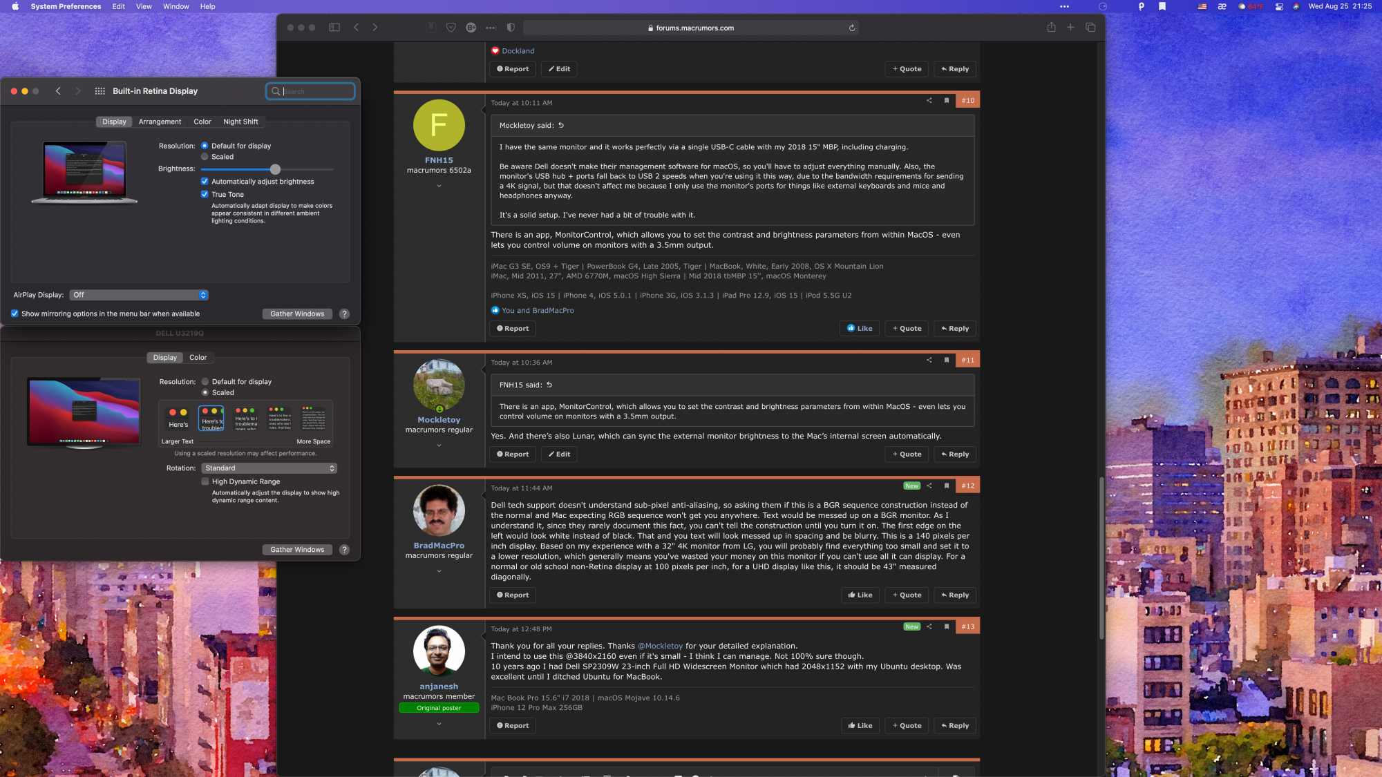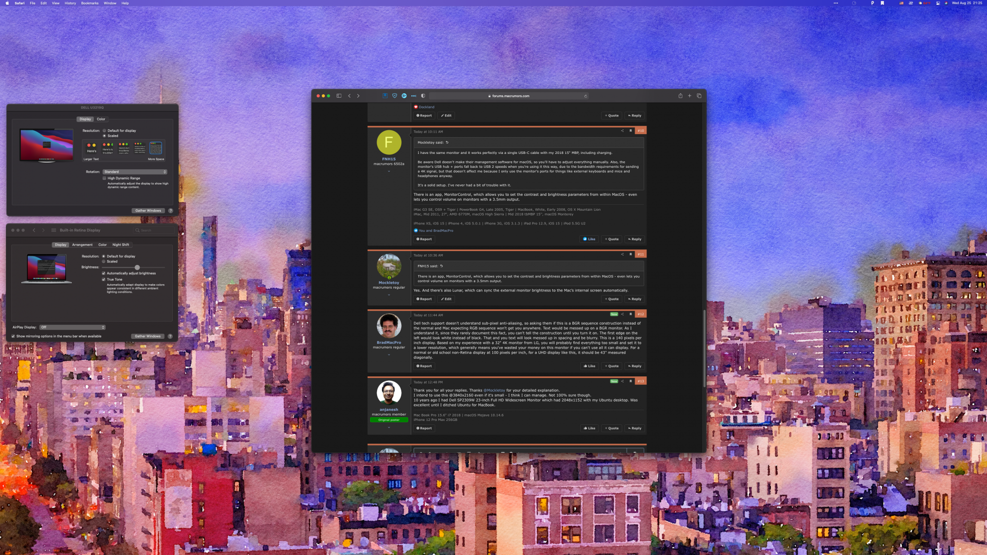 Be aware Dell doesn't make their management software for macOS, so you'll have to adjust everything manually. Also, the monitor's USB hub + ports fall back to USB 2 speeds when you're using it this way, due to the bandwidth requirements for sending a 4K signal, but that doesn't affect me because I only use the monitor's ports for things like external keyboards and mice and headphones anyway.