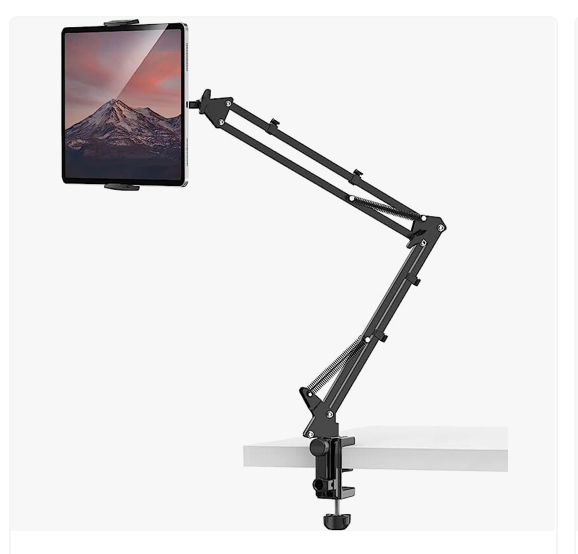 1. Tryone Gooseneck Tablet Stand: It's known for its durability and flexibility. The arm is pretty robust and can be stretched to a good length. What's great is that it clamps onto the desk securely, so you won't have any wobbling iPad disasters!